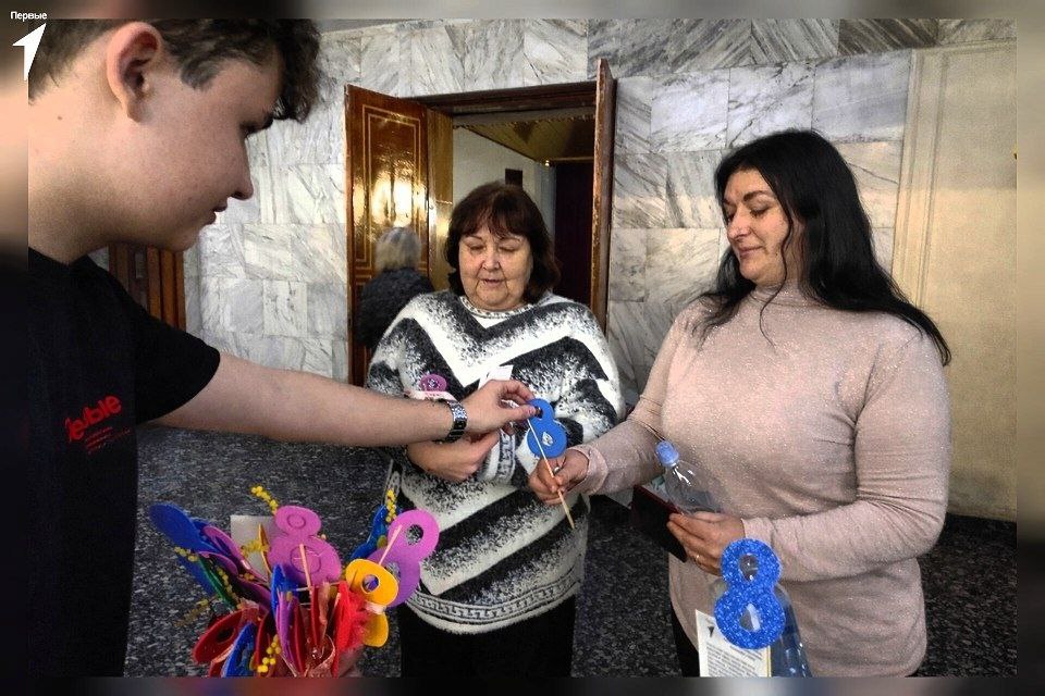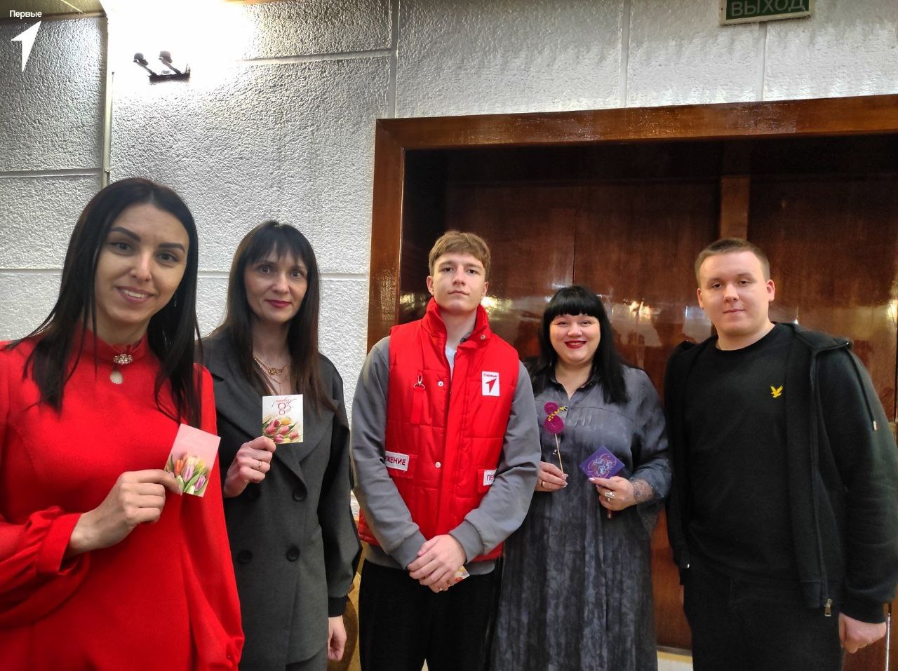 Перед началом концерта они проявили инициативу и поздравляли всех женщин с наступающим праздником: дарили открытки, говорили тёплые слова и искренние пожелания.
