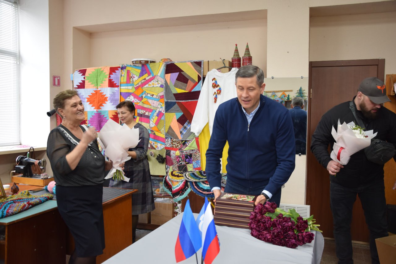 Председатель Правительства ЛНР Егор Ковальчук посетил творческую студию «Рукотворные чудеса» в Славяносербске. Там женщины пожилого возраста объединились, чтобы оказывать гуманитарную помощь бойцам спецоперации. Они шьют маскировочные халаты, вяжут носки и прикроватные коврики в госпитали и блиндажи для военных, мастерят обереги. Участницы студии также являются активистками Единой России и вместе с другими партийцами регулярно передают все изготовленное участникам СВО в рамках акции «Zа Победу». Кроме того, они участвуют и в других партийных акциях: «Собери ребенка в школу», «Коробка храбрости», «Zа наших». Руководит студией Лариса Шрамко.