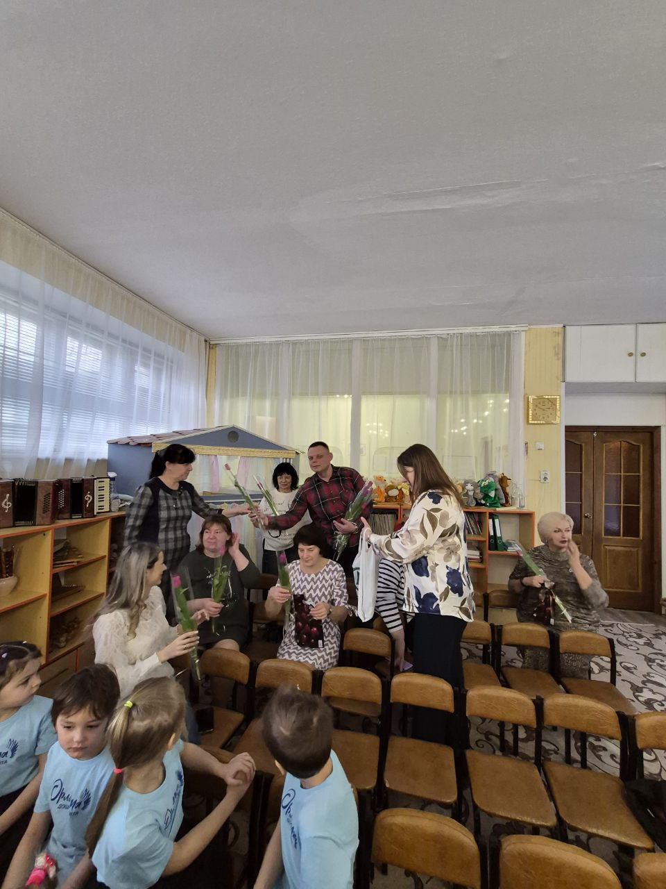 В первую очередь хочется сказать спасибо коллективу сада во главе с заведующей Натальей Николаевной Кейс, которые делают огромную, невероятно важную работу. Воспитатели не просто учат – они вкладывают душу в каждого малыша. Мы поздравили их с наступающим 8 Марта, вручили цветы и сладкие подарки.
