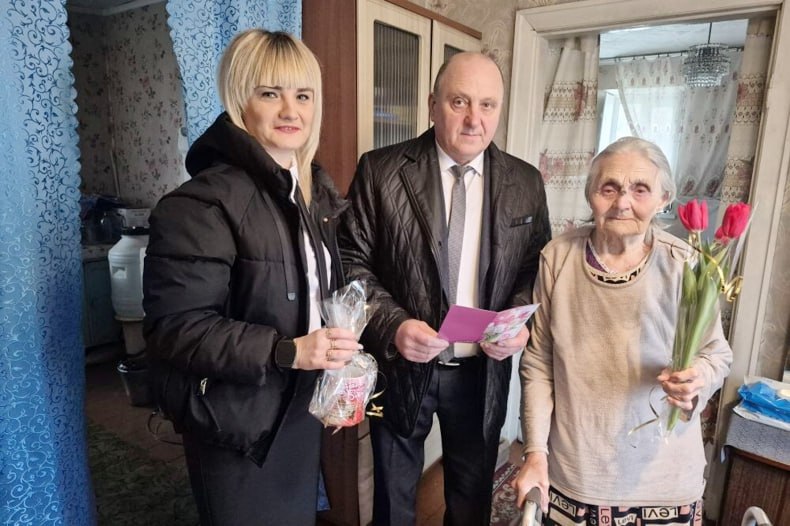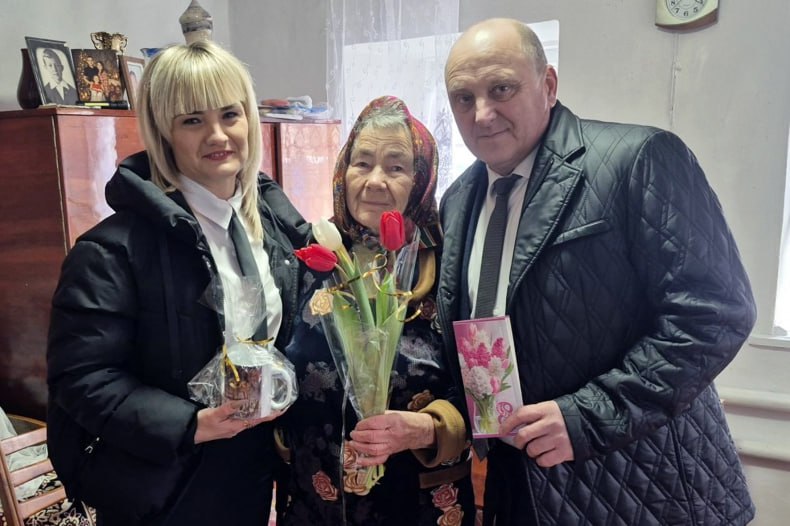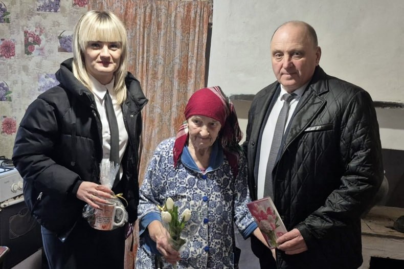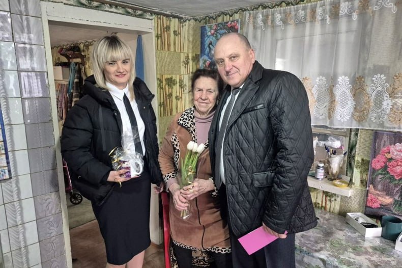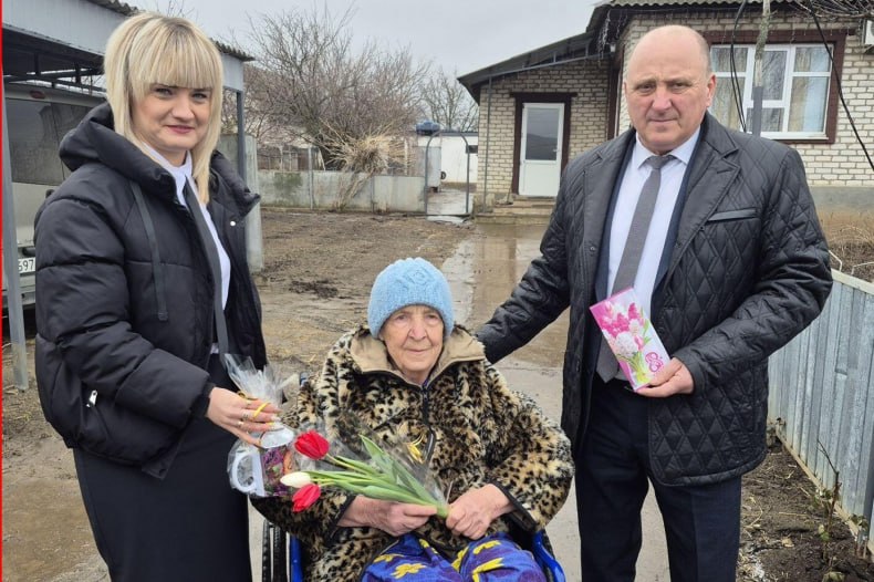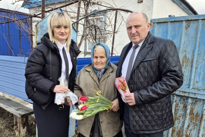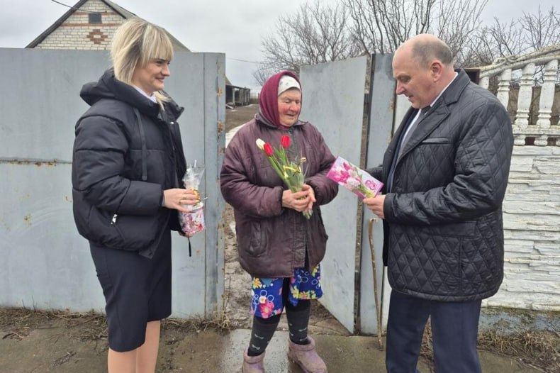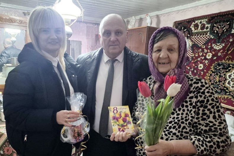 В преддверии празднования Международного женского дня начальник отдела по обеспечению жизнедеятельности села Медвежанка Валерий Кравченко поздравил с замечательным весенним праздником односельчанок, вручив подарки и цветы.