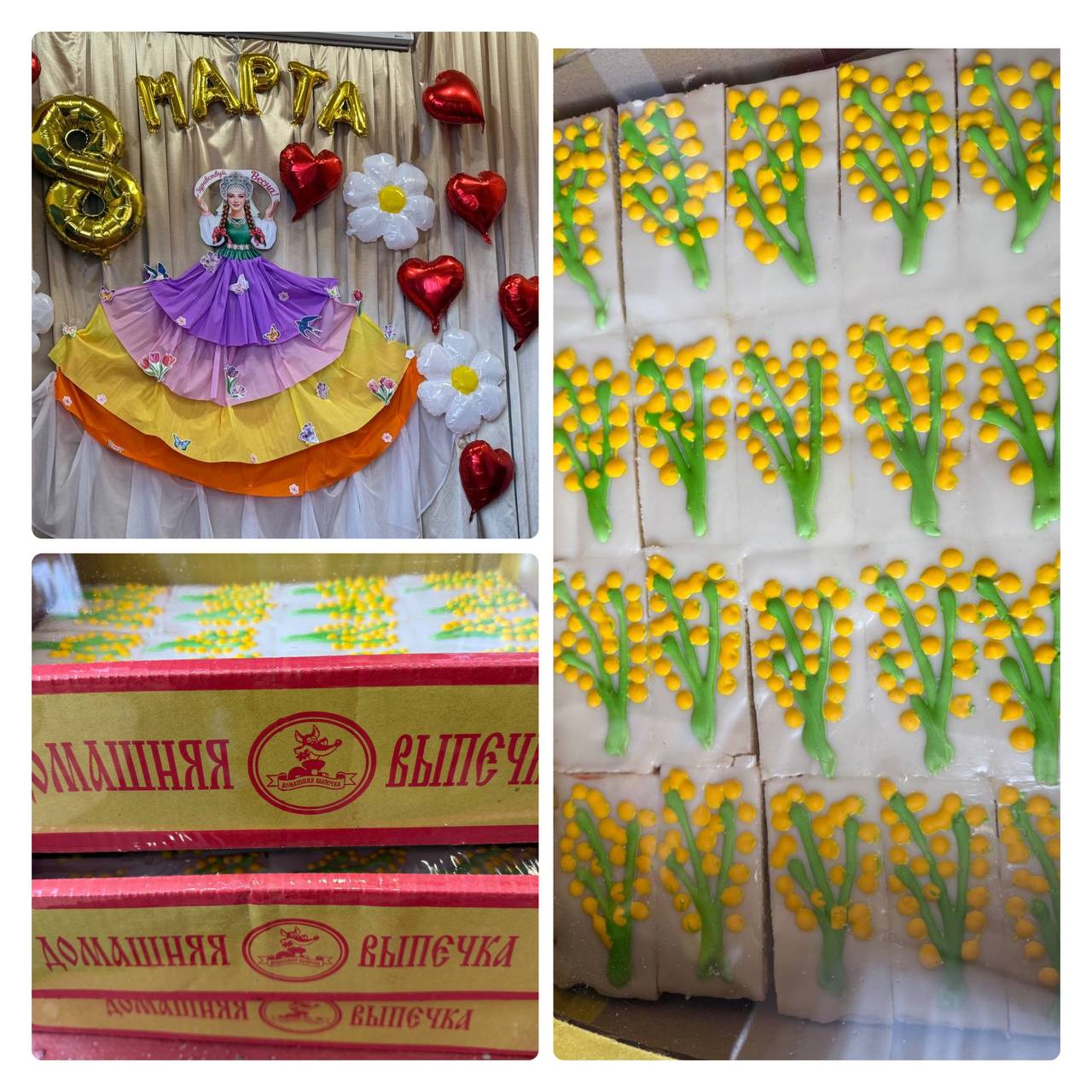 Для каждой женщины коллектив предприятия подготовил вкусные пирожные, украшенные по-весеннему нежно.