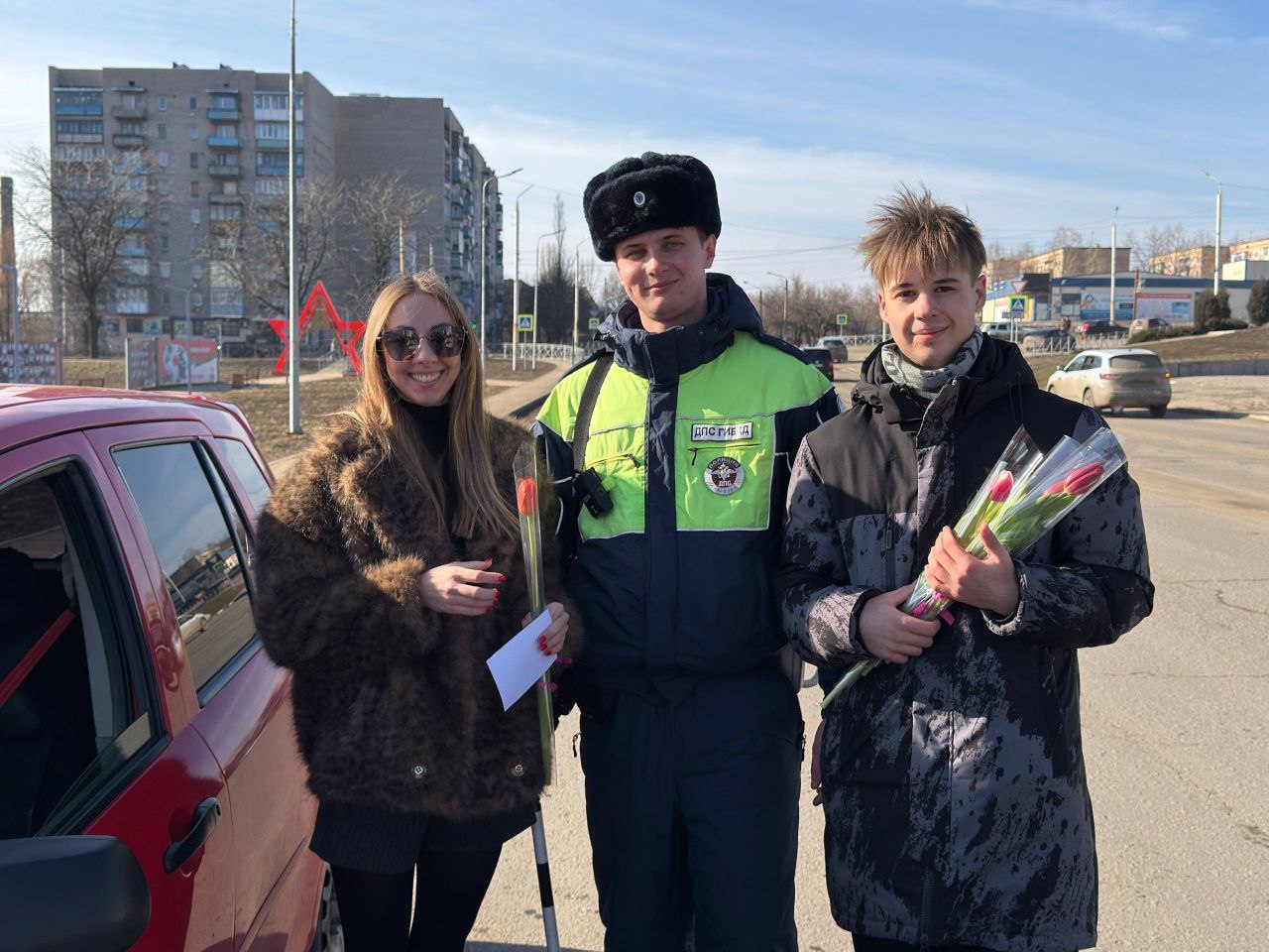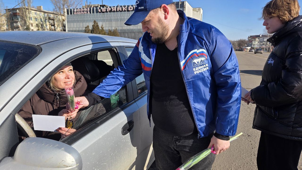 В день самого нежного праздника весны активисты Брянковского Молодежного совета совместно с исполнительным секретарем местного отделения партии "Единая Россия" Андреем Гавришем и сотрудниками отделения ГИБДД ОМВД России «Брянковский» вышли на улицы, чтобы поздравить представительниц прекрасного пола, находящихся за рулем.