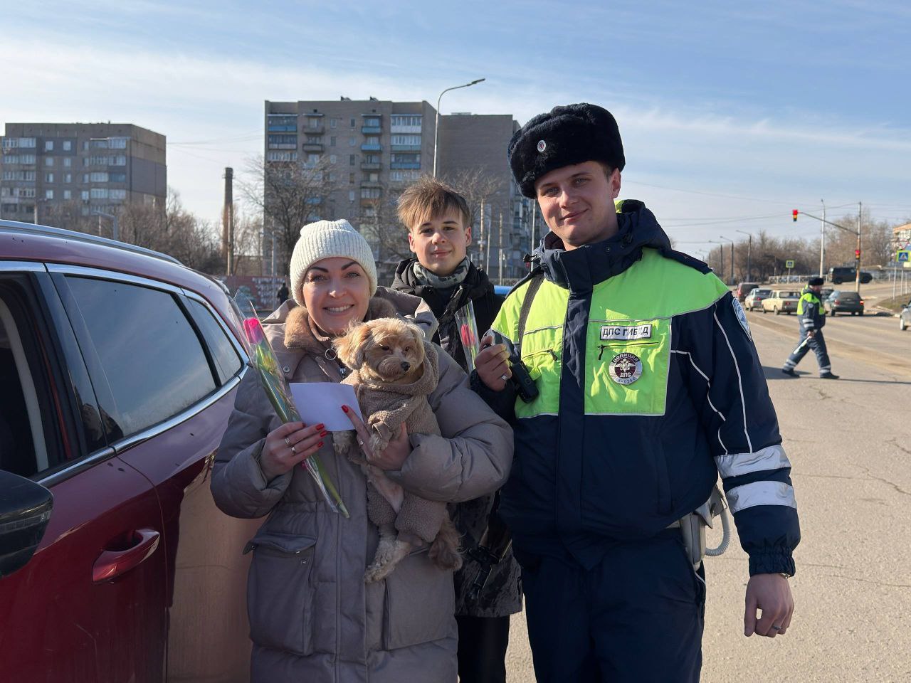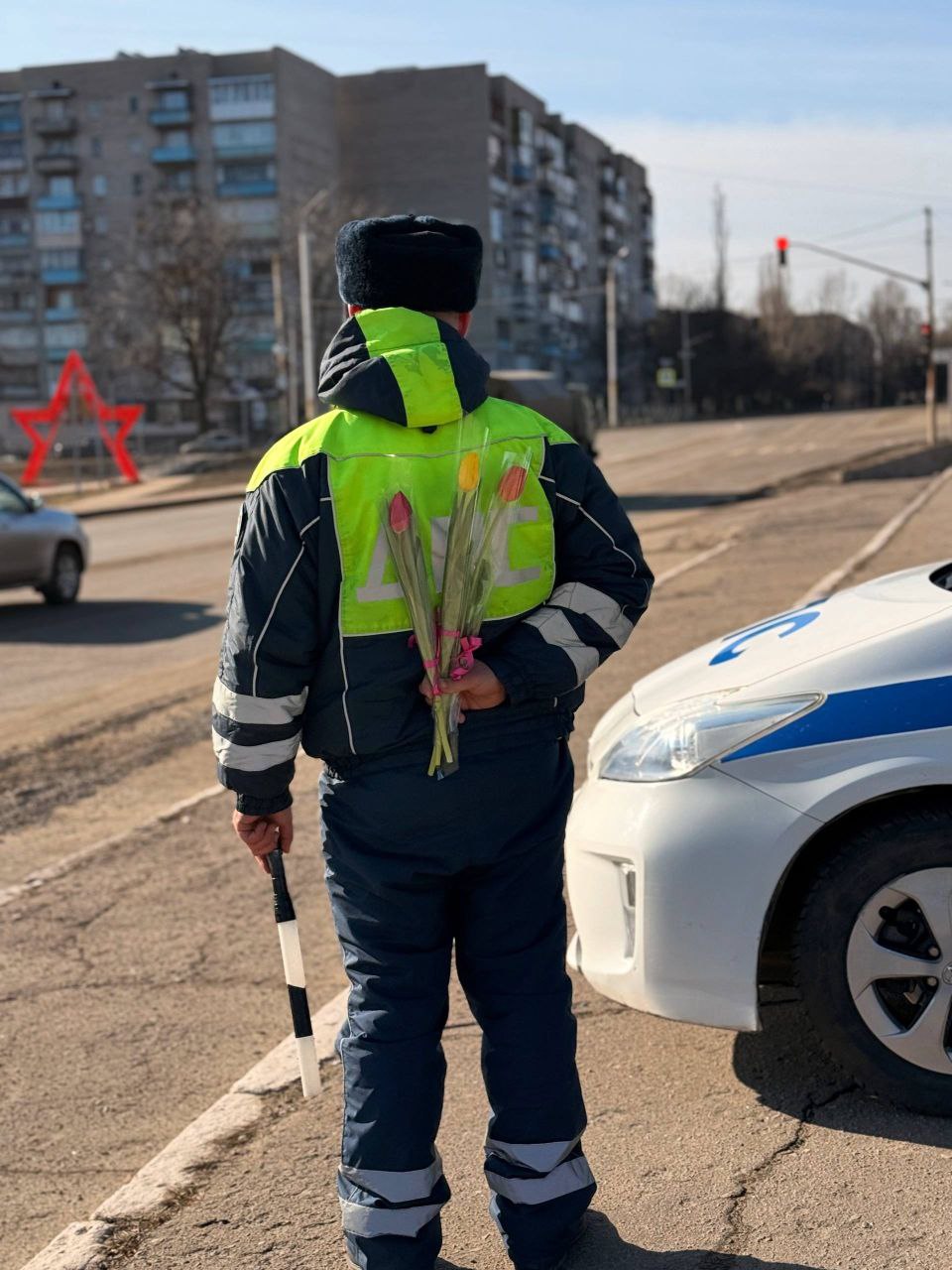 Для многих автоледи остановка инспектора — событие волнительное, но сегодняшний день стал исключением! Вместо проверки документов девушек ждали теплые слова поздравлений, яркие тюльпаны и праздничные открытки.