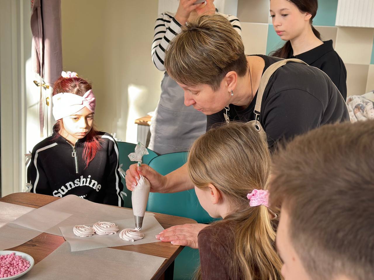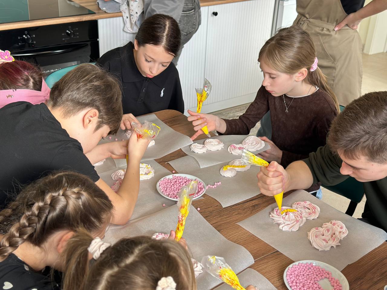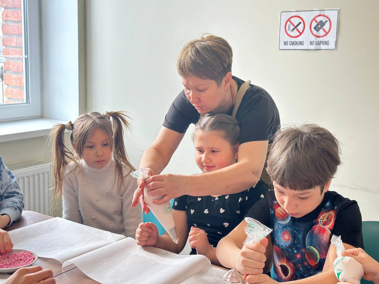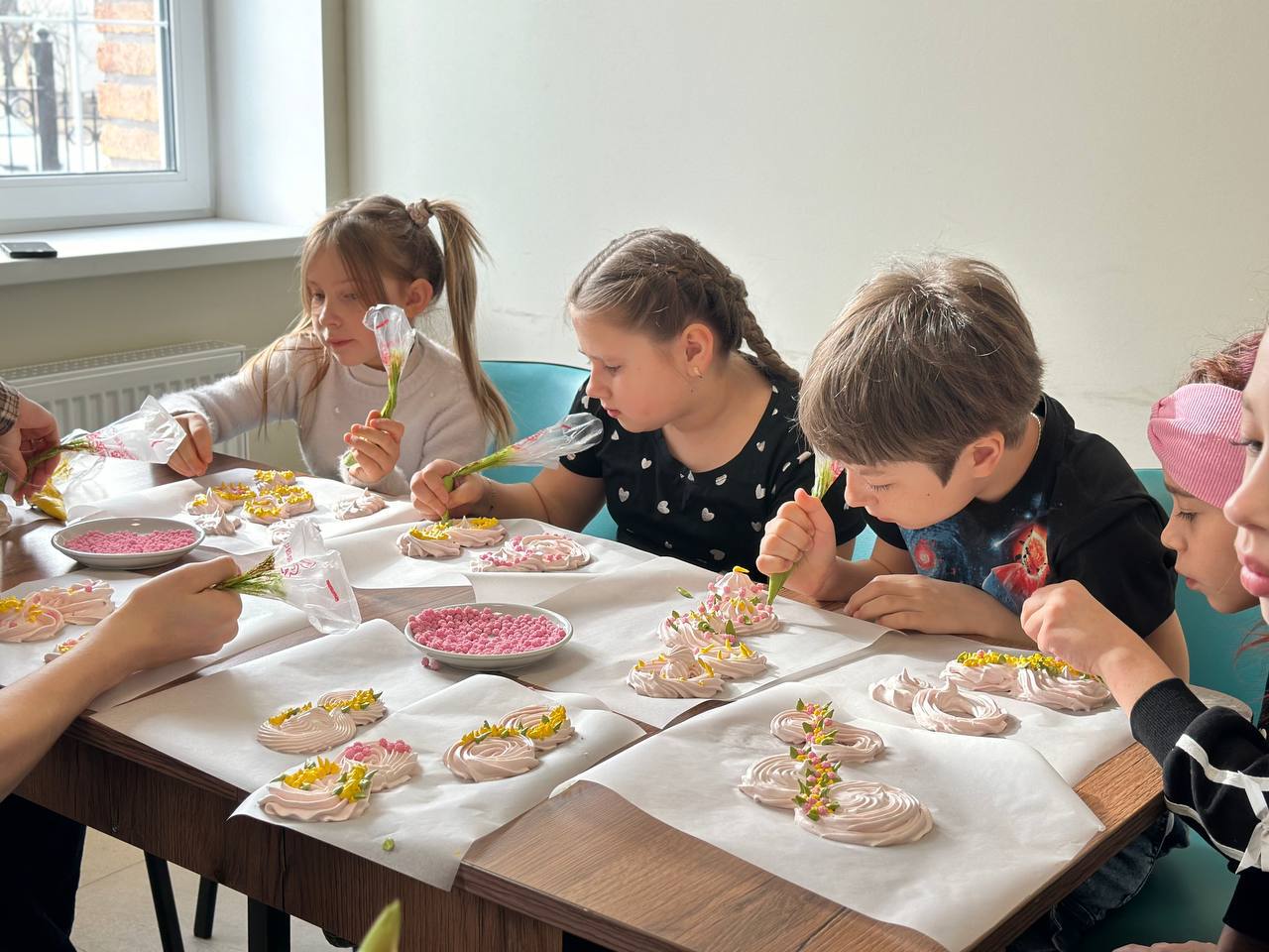Ведущей встречи стала кондитер с большим сердцем — Галина Дубина. Она с теплом и терпением помогала детям создавать красивые кондитерские изделия.