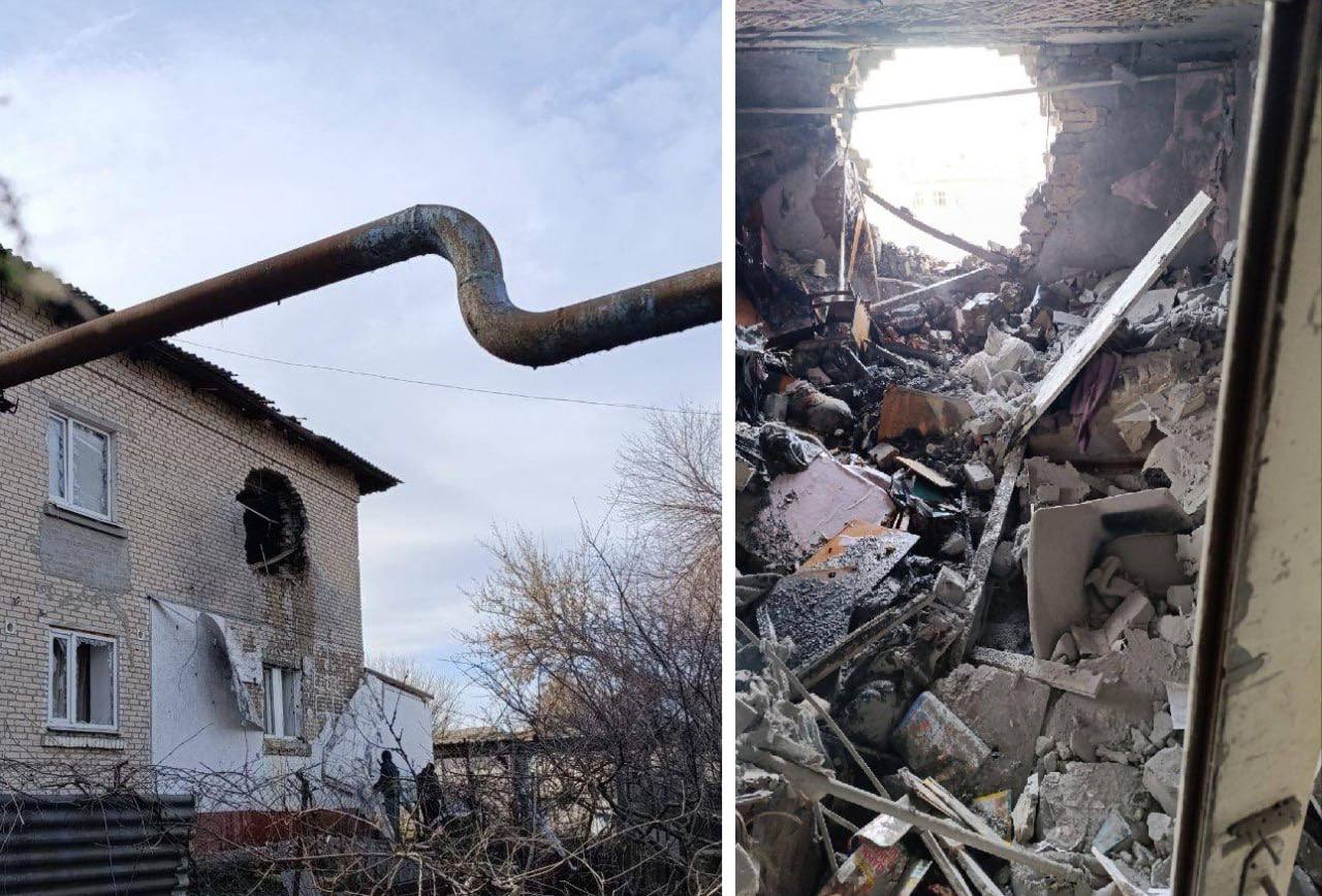 2 марта. Прямое попадание артиллерийского снаряда в жилой дом в г. Васильевка, Запорожская область.