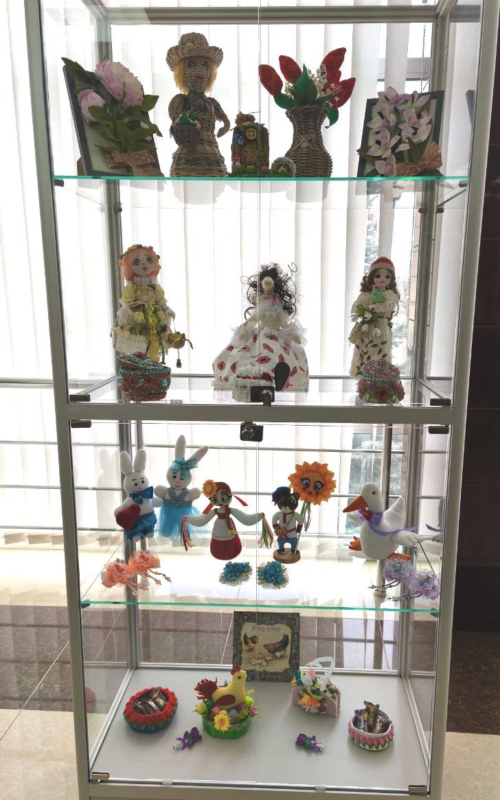 На выставке представлены тематические работы двадцати мастеров клуба в следующих техниках : бумажная лоза, народная кукла, ватная игрушка, мешковина и шпагат, декупаж, вязаная игрушка, вязание амигуруми, алмазная мозаика, вышивка бисером, вышивка лентами, вышивка крестом, канзаши, фом-флористика, грунтованный текстиль, сухое валяние, фетровая игрушка, интерьерная кукла.