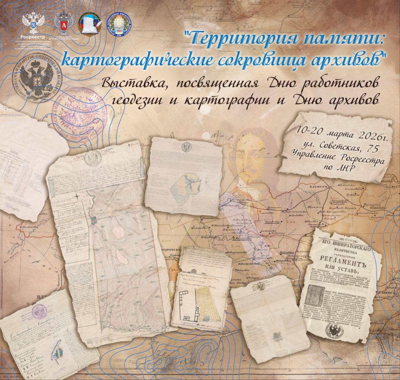 «10 марта в Управлении Росреестра по ЛНР торжественно открылась выставка „Территория памяти: картографические сокровища архивов“, посвященная Дню работников геодезии и картографии и Дню архивов. Данная выставка — возможность увидеть эволюцию подходов к землеустройству и межеванию, оценить вклад геодезистов, картографов и архивистов в сохранение исторической памяти и обеспечение территориальной целостности региона и страны в целом», — рассказали в ведомстве.