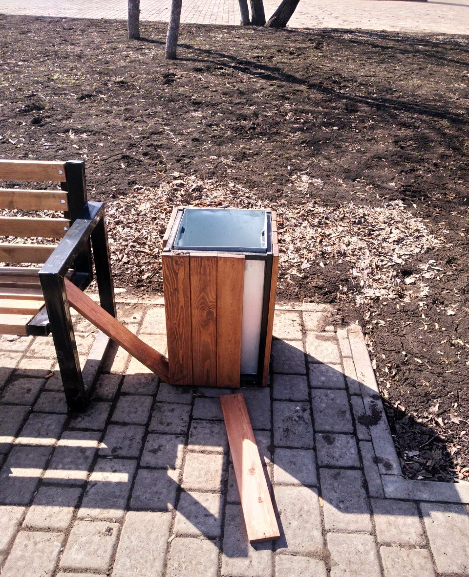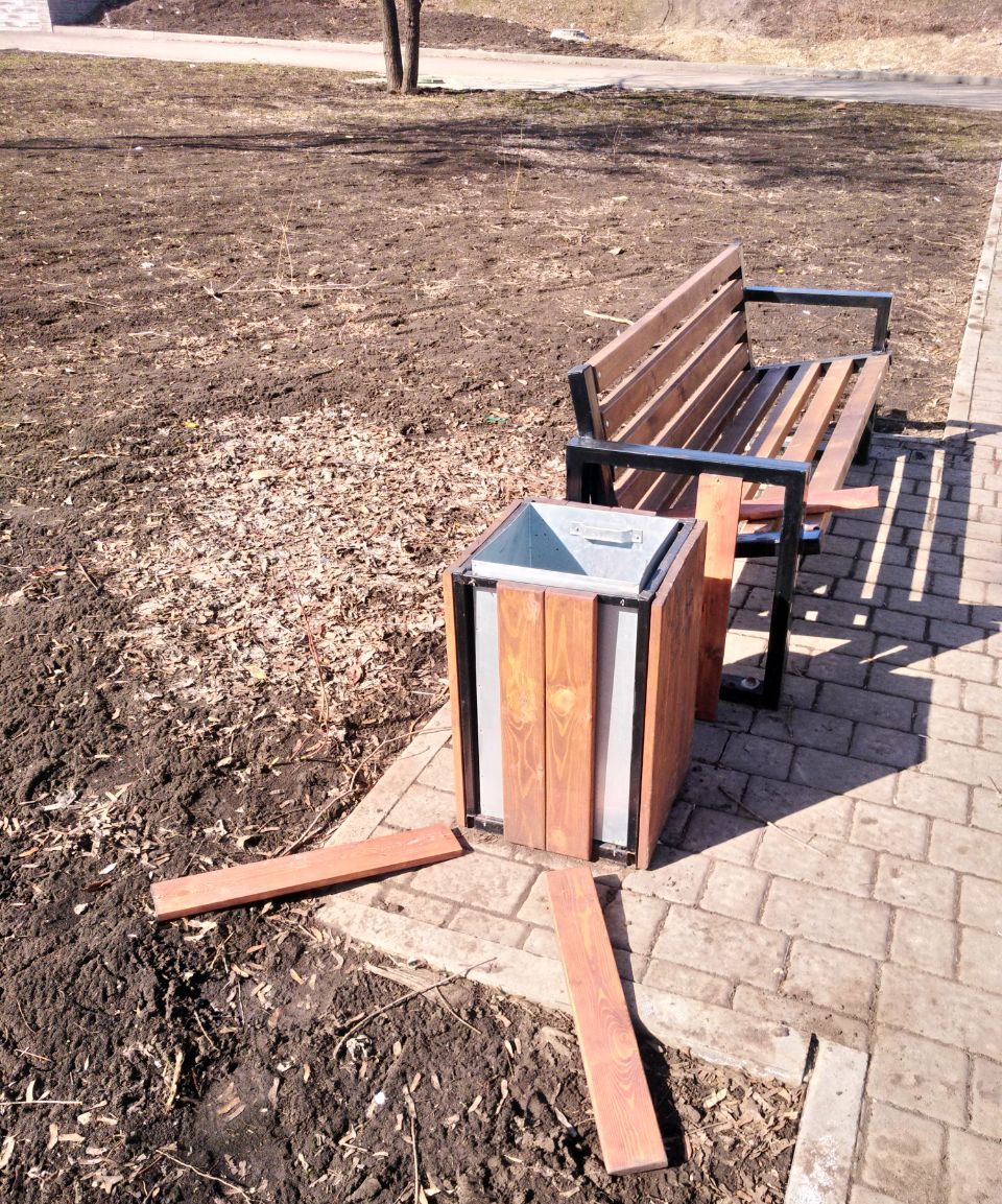 Теплая погода позволила коммунальным службам провести первую весеннюю проверку состояния городского благоустройства. Результаты оказались неутешительными: во многих общественных пространствах скамейки и урны оказались сломаны или испорчены.
