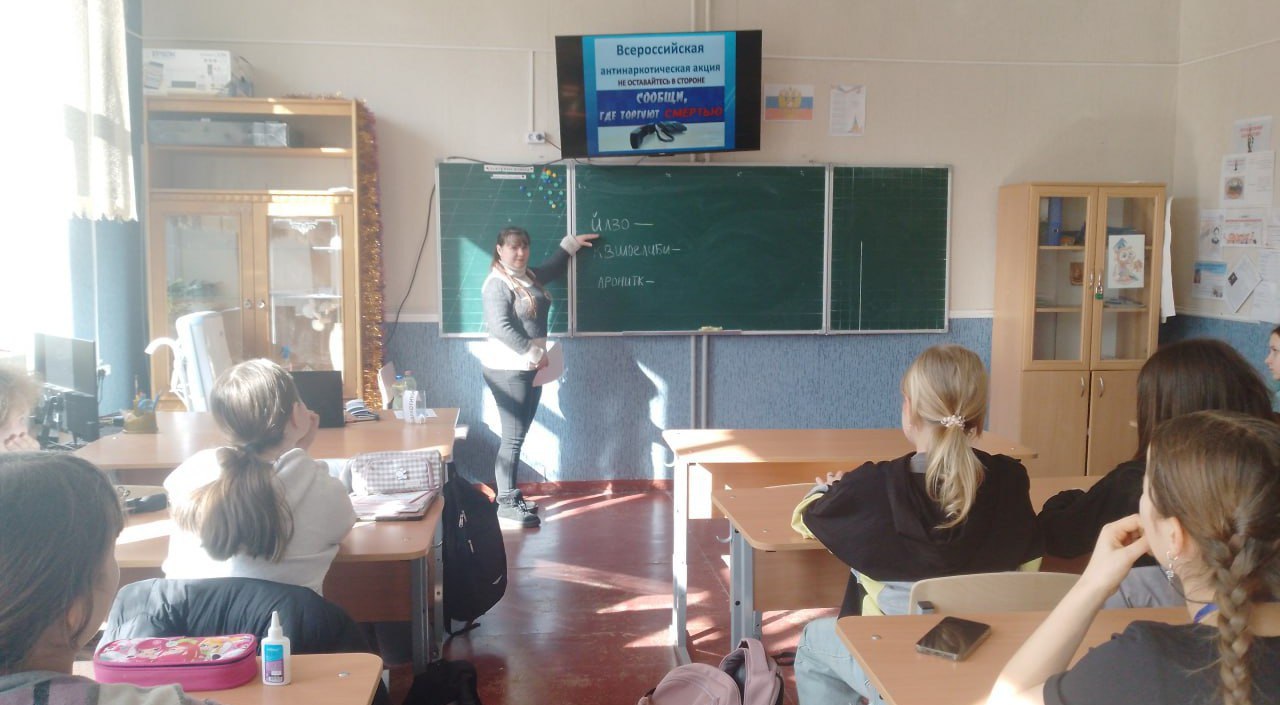 Педагог-организатор ГБОУ ЛНР "Рубежанская ОШ № 3" провела Всероссийскую антинаркотическую акцию "Сообщите, где торгуют смертью".