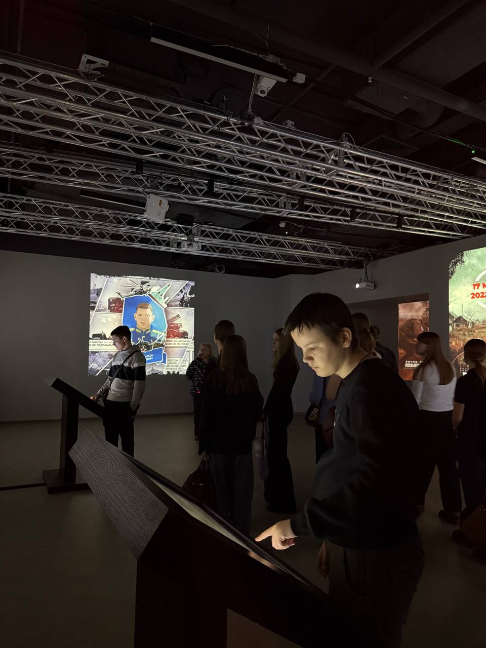 После мультимедийной выставки о героях нашего времени, ребята также вспомнили события Великой Отечественной Войны, узнали много нового из культуры тех годов, а также, благодаря информационным технологиям, смогли поучаствовать в реконструкции некоторых событий.