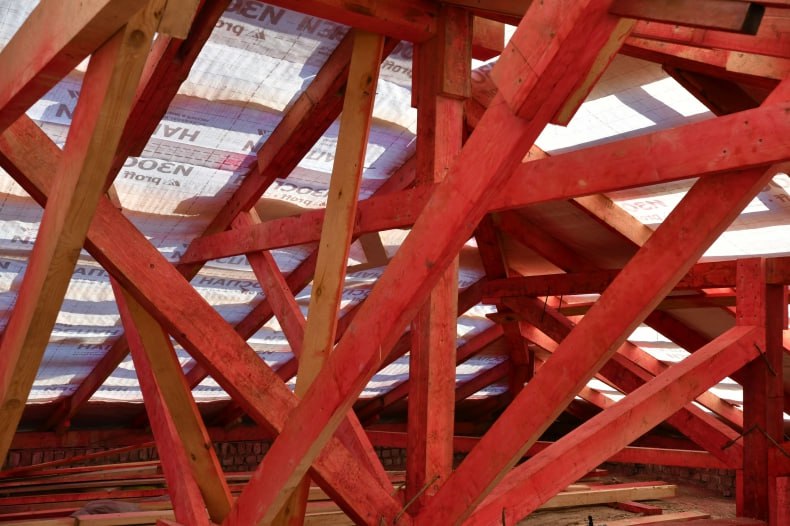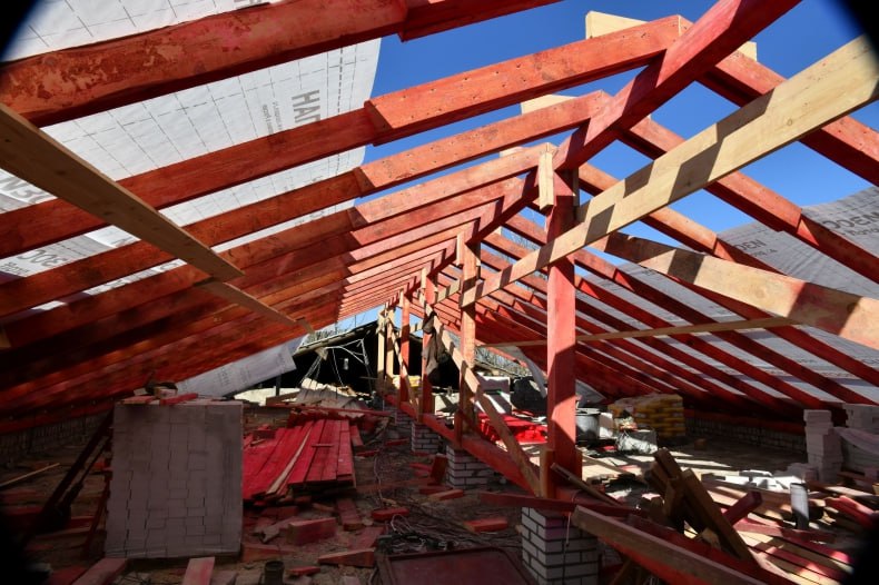 Как рассказал бригадир Михаил Затынайченко, сейчас основной фронт работ сосредоточен на внутренних конструкциях крыши. Процесс включает в себя несколько этапов для обеспечения надежности будущей кровли.