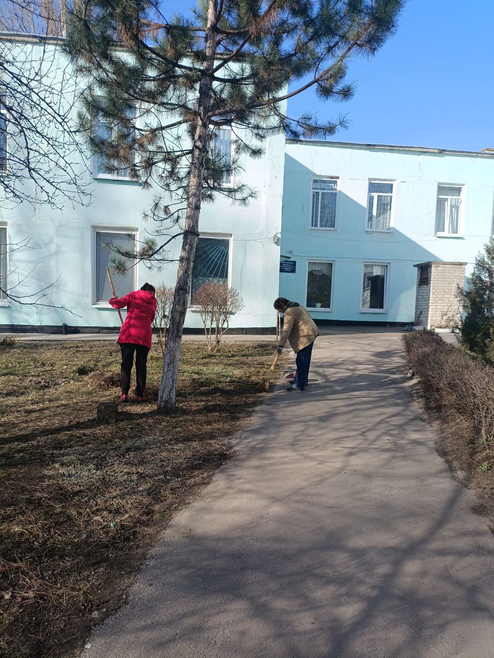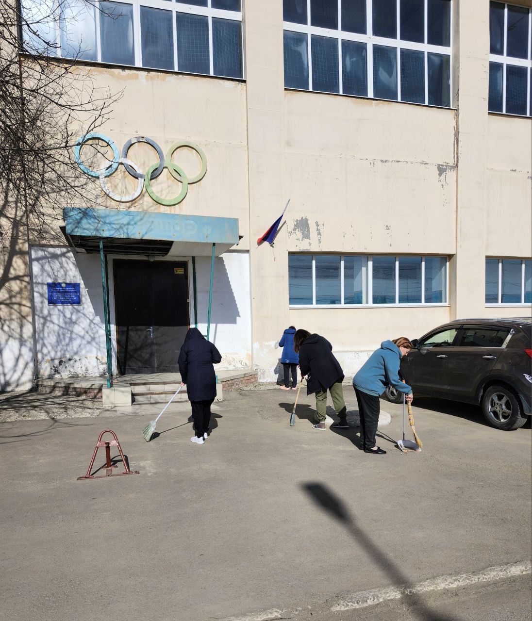 Сотрудники учреждений культуры и спорта проводят весеннюю уборку территорий