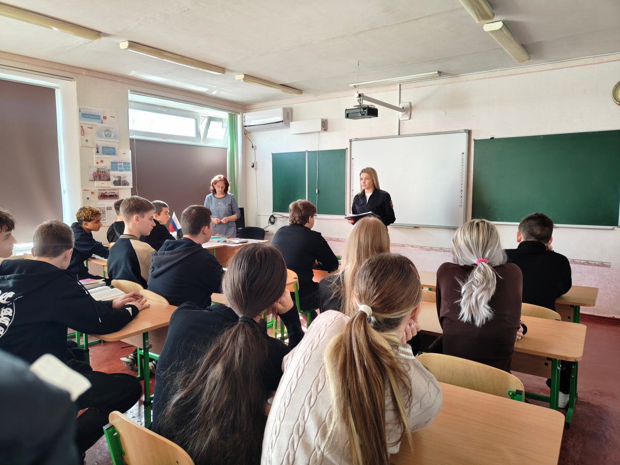 Заместитель начальника отдела МВД России - начальник отделения по вопросам миграции старший лейтенант полиции Людмила Косова и инспектор ОВМ младший лейтенант полиции Татьяна Яковенко посетили общеобразовательные организации Меловского муниципального округа и пообщались с учениками выпускных классов.
