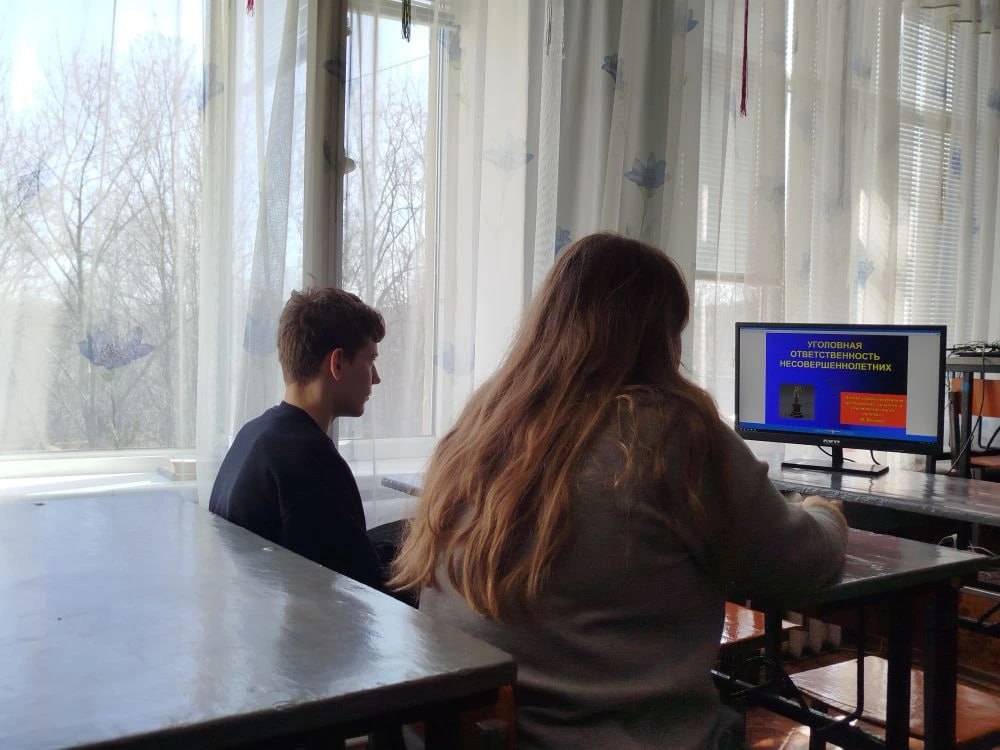 Для наглядности использовались видеоматериалы от МВД Луганской Народной Республики, показывающие реальные ситуации и последствия противоправного поведения. Это помогло учащимся понять серьезность темы и важность соблюдения закона.