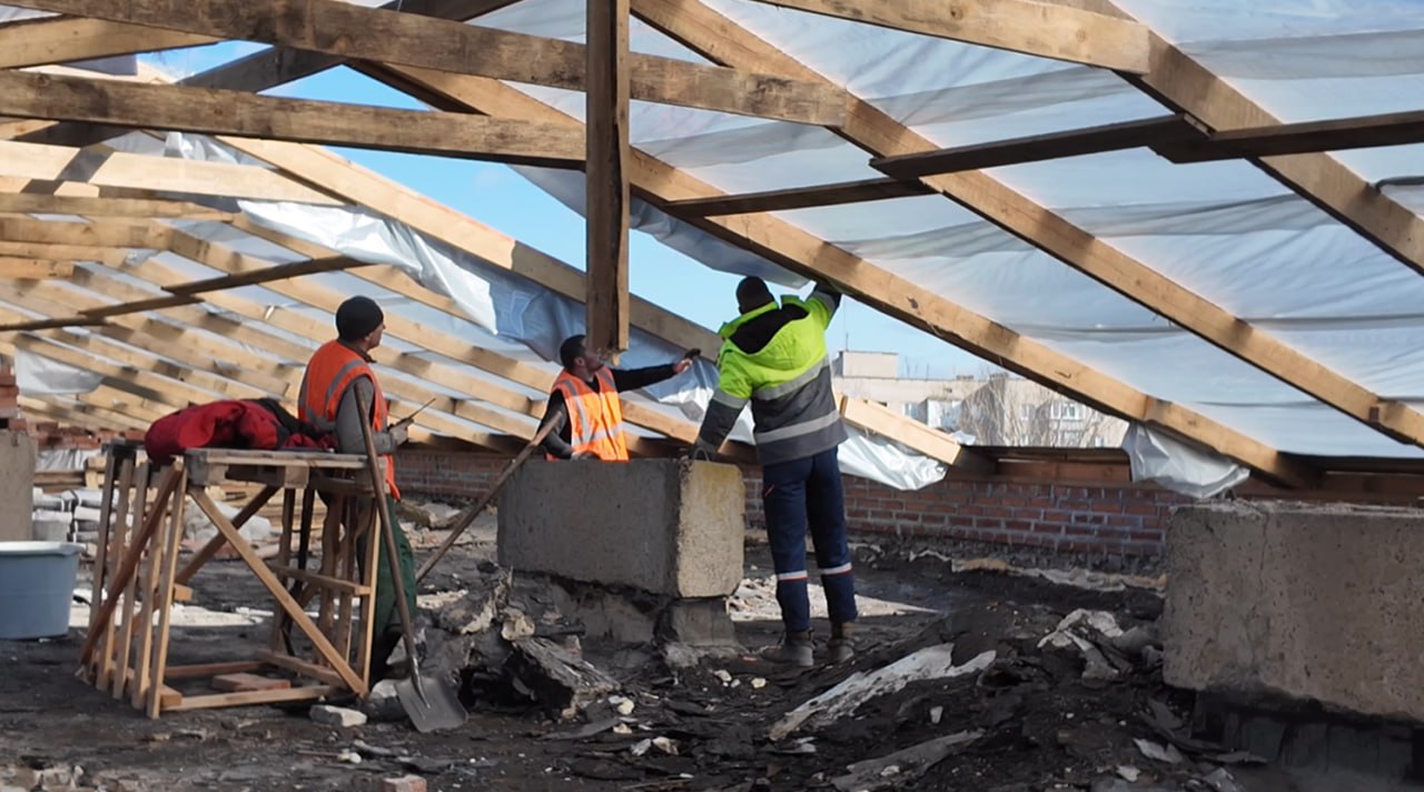 Строители восстанавливают вентиляционные шахты на Лютикова, 27