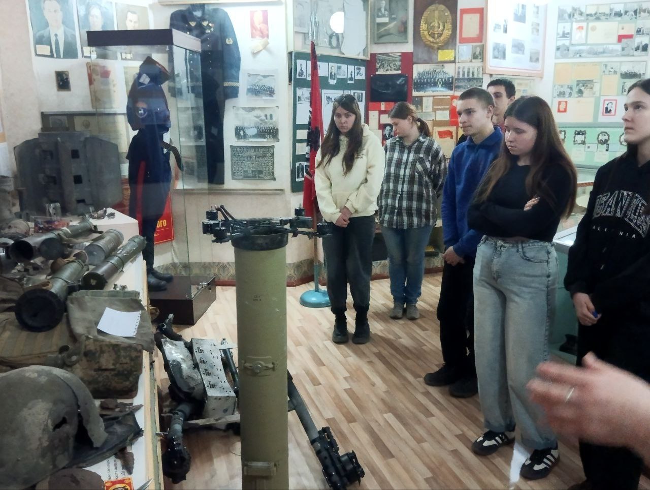 Учащиеся смогли увидеть уникальные экспонаты, переданные музею поисковиками – немые свидетели трагедии, найденные среди обломков советского самолёта ПЕ-2, сбитого 21 декабря 1944 года в западной Латвии. Эти предметы подтверждают присутствие Николая Шаповалова на борту.