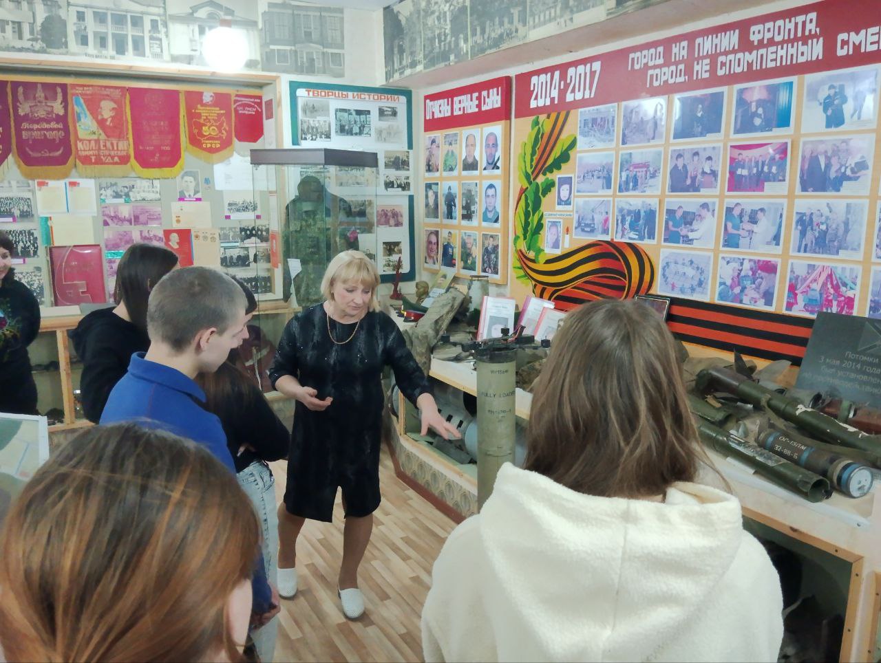 Ирина Викторовна Бавыка, директор музея, рассказала учащимся о трагической судьбе экипажа самолёта, двое из которых не вернулись с боевого задания в декабре 1944 года, пытаясь прорвать Курляндский котёл в Латвии. Благодаря международному проекту «Небо Родины» «Поискового движения России», отряду «Военная археология» и другим энтузиастам, удалось установить личность лётчика и восстановить детали последнего воздушного боя.
