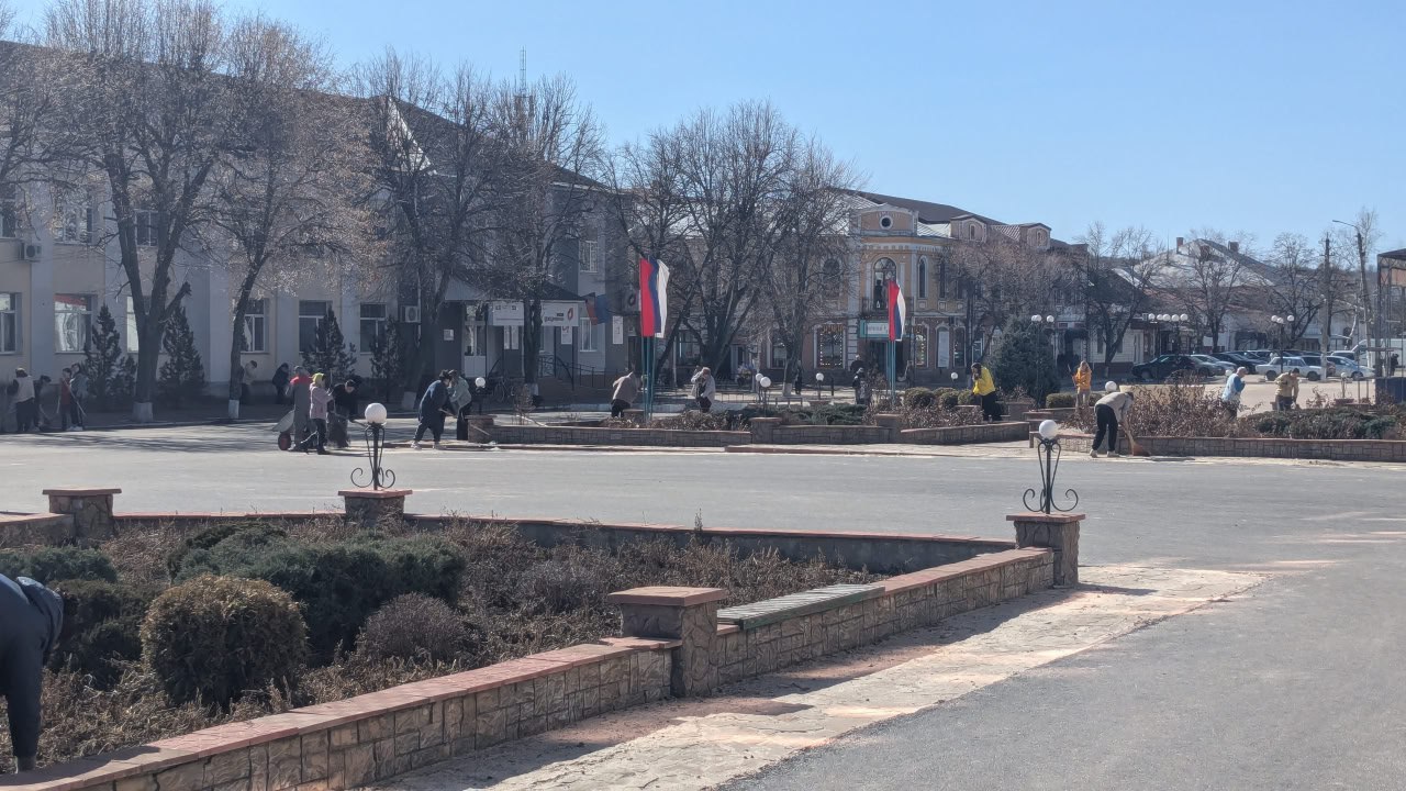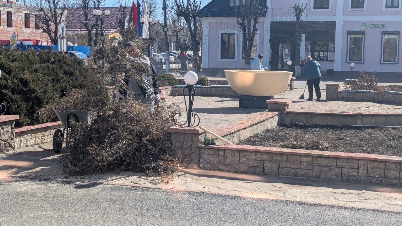 Работники Администрации Старобельского муниципального округа приняли участие в субботнике и привели в порядок территорию центральной площади города.