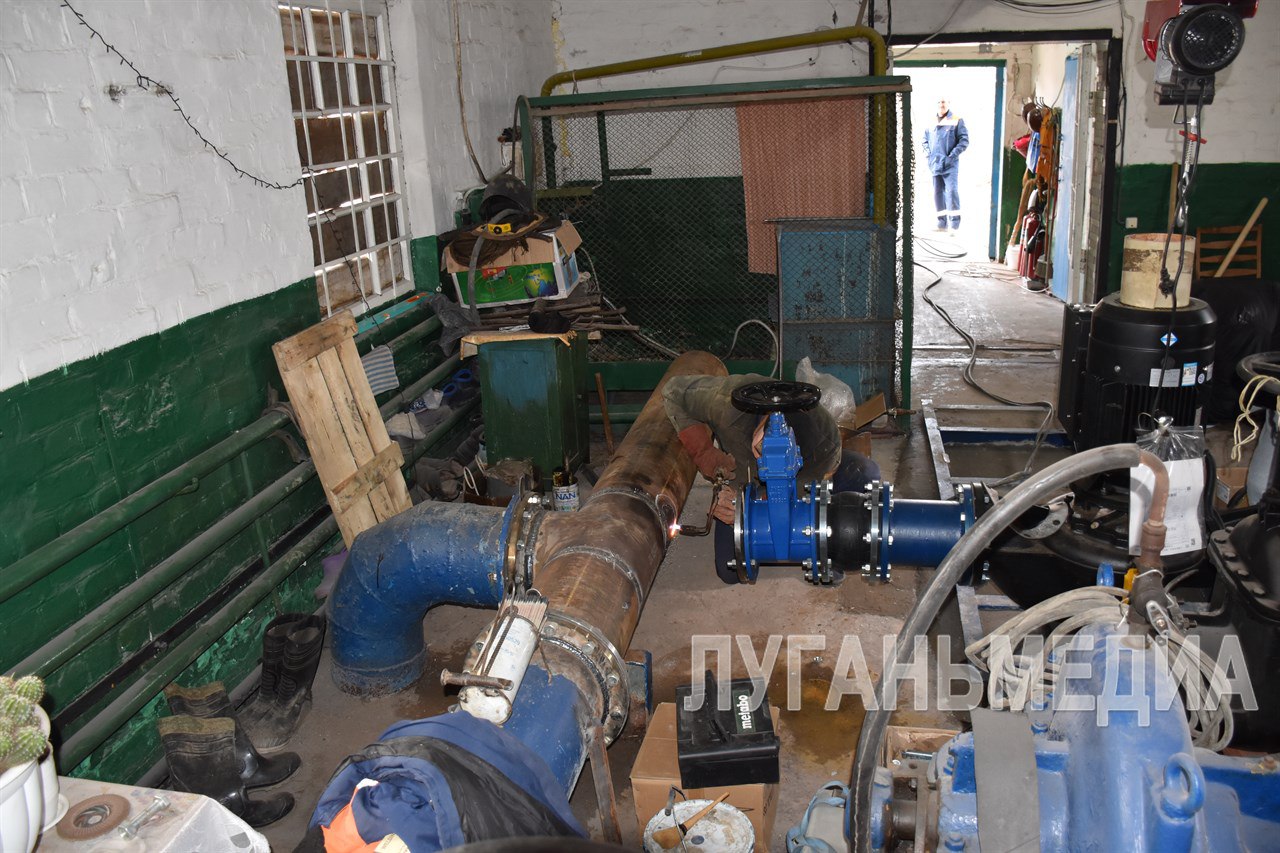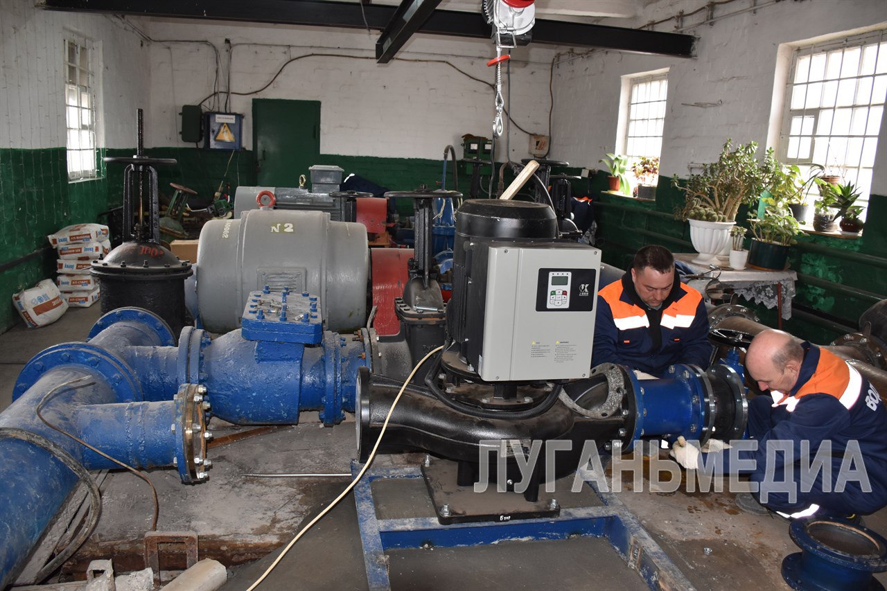Поддержку в проведении ремонтно-восстановительных работ сотрудникам Первомайского участка Стахановского департамента ГУП ЛНР «Лугансквода» оказывают коллеги из ГП «Калугаоблводоканал». Калужские специалисты собирают и устанавливают три новых насоса с дистанционным управлением с производительностью 280 куб. м. в час.
