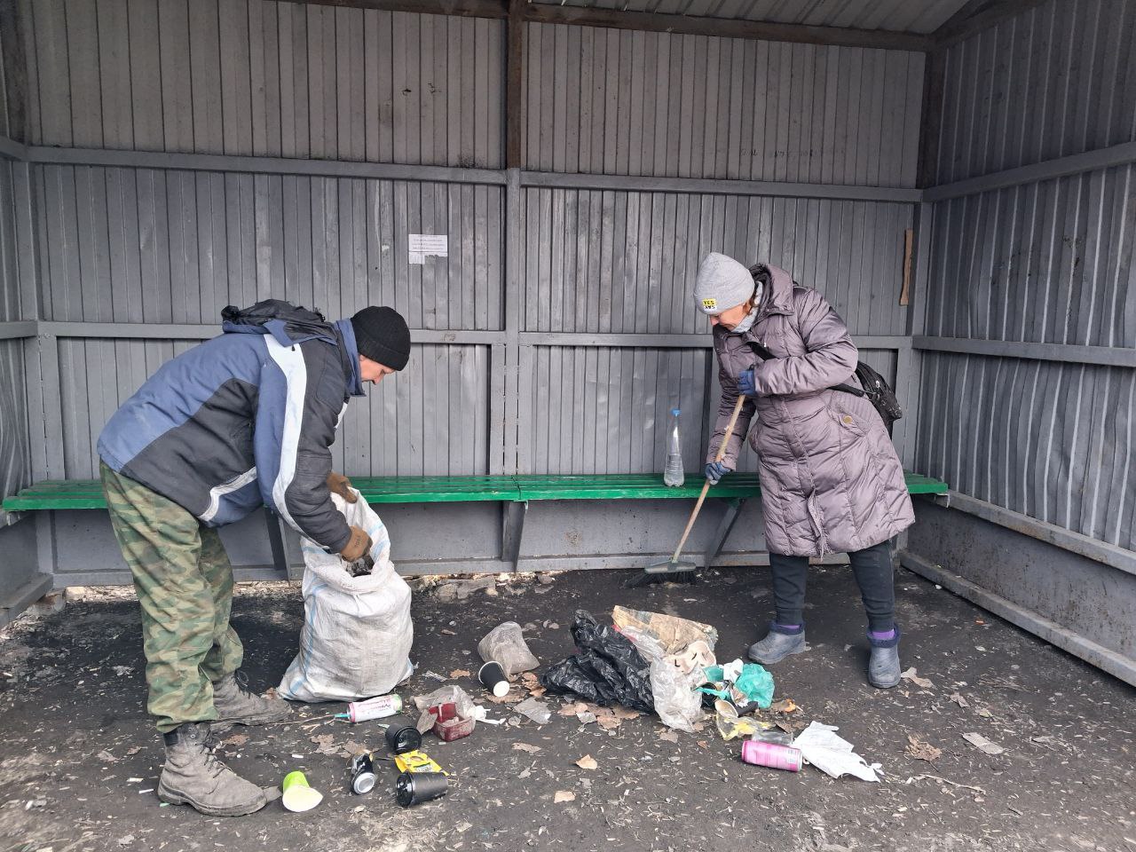Так, сегодня сотрудники МУП «ЖЭК» города Ровеньки работали в пгт Новодарьевка: проведена уборка территорий автобусных остановок от мусора.