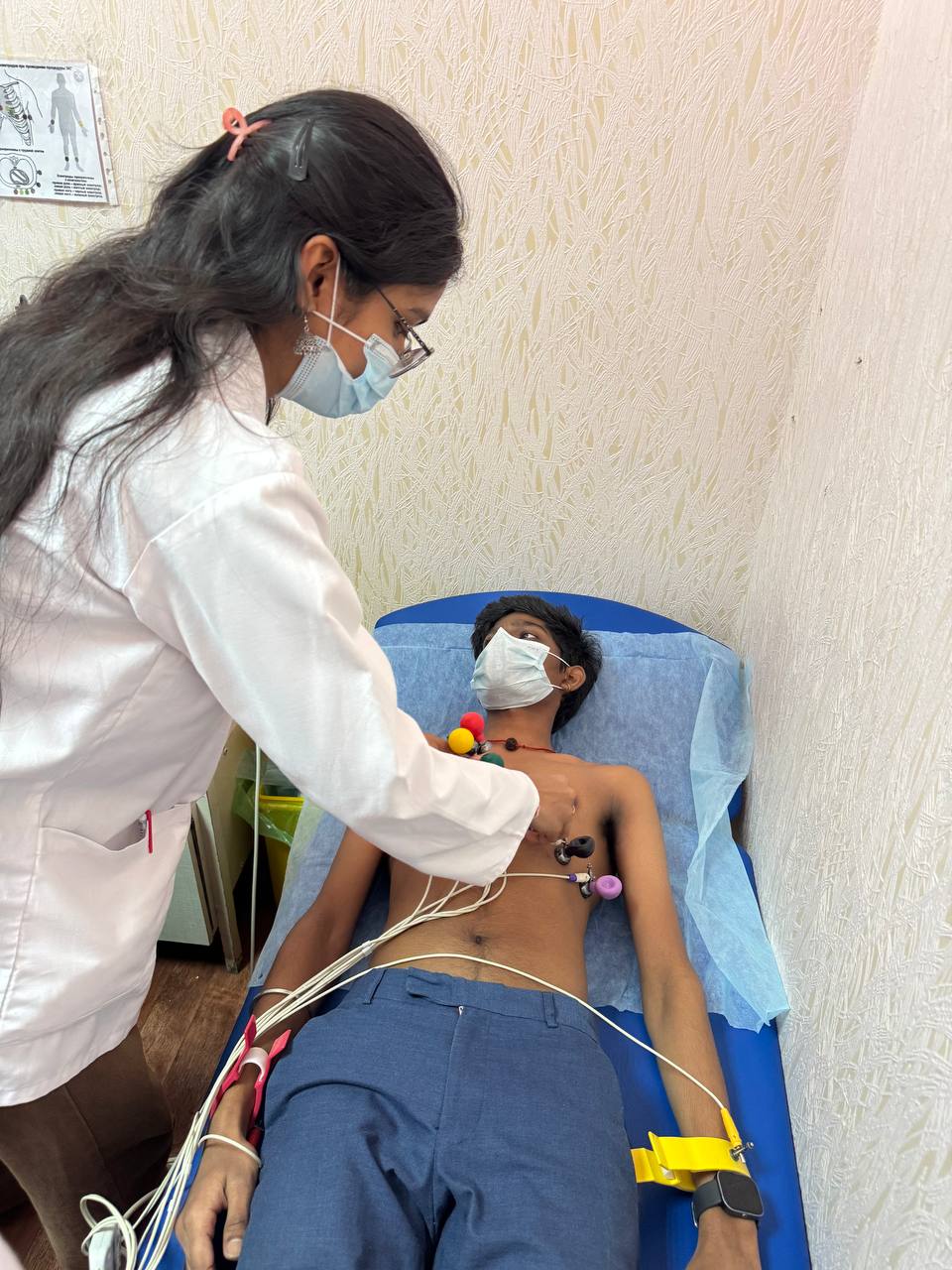 Во время практического занятия студенты смогли ознакомиться с методикой регистрации электрокардиограммы (ЭКГ), проведения антропометрического исследования, измерением внутриглазного давления, а также выполнением экспресс-диагностики уровня глюкозы и холестерина в крови.