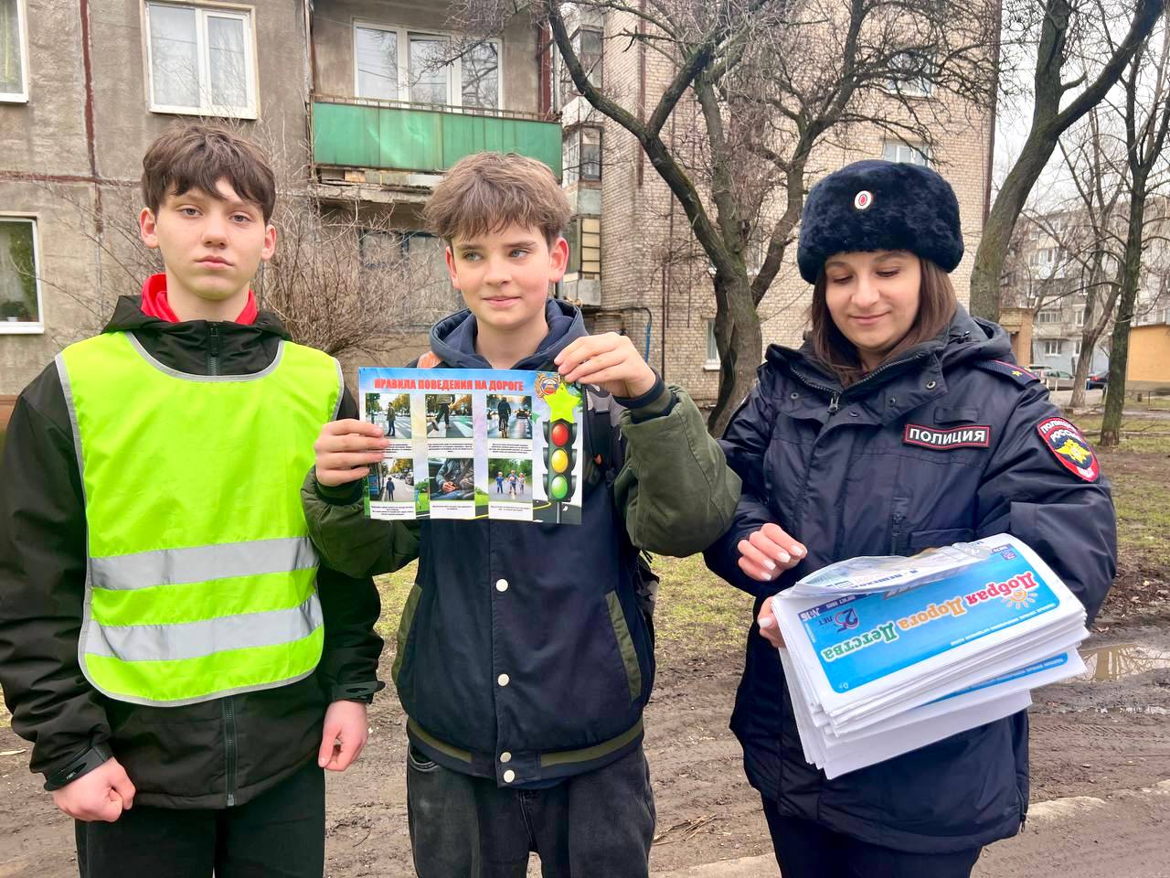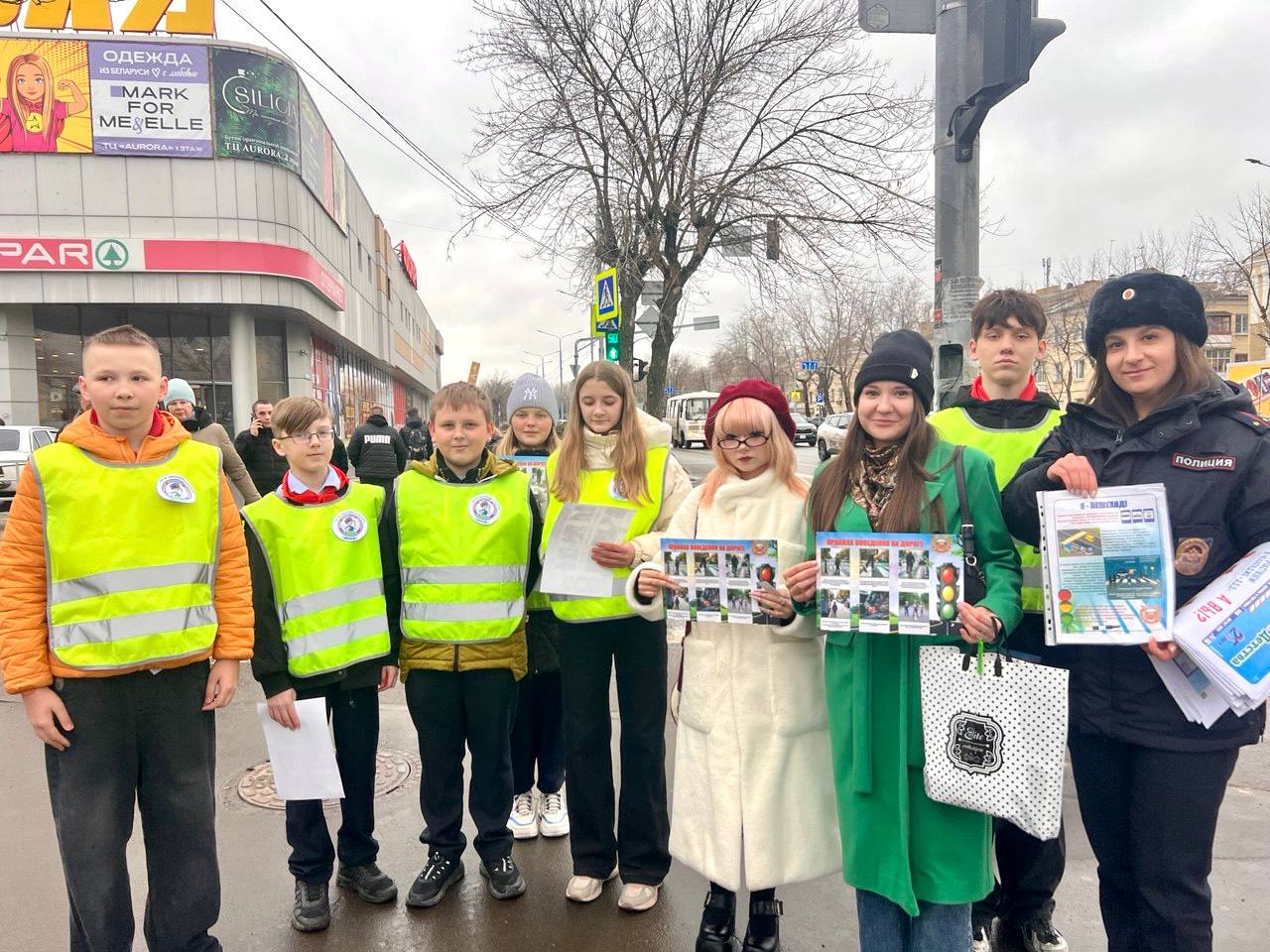 Сотрудники ГИБДД совместно с отрядом ЮИД «Бонд» 38 школы провели мероприятие для пешеходов, в рамках социально-значимой акции «Весенние каникулы»