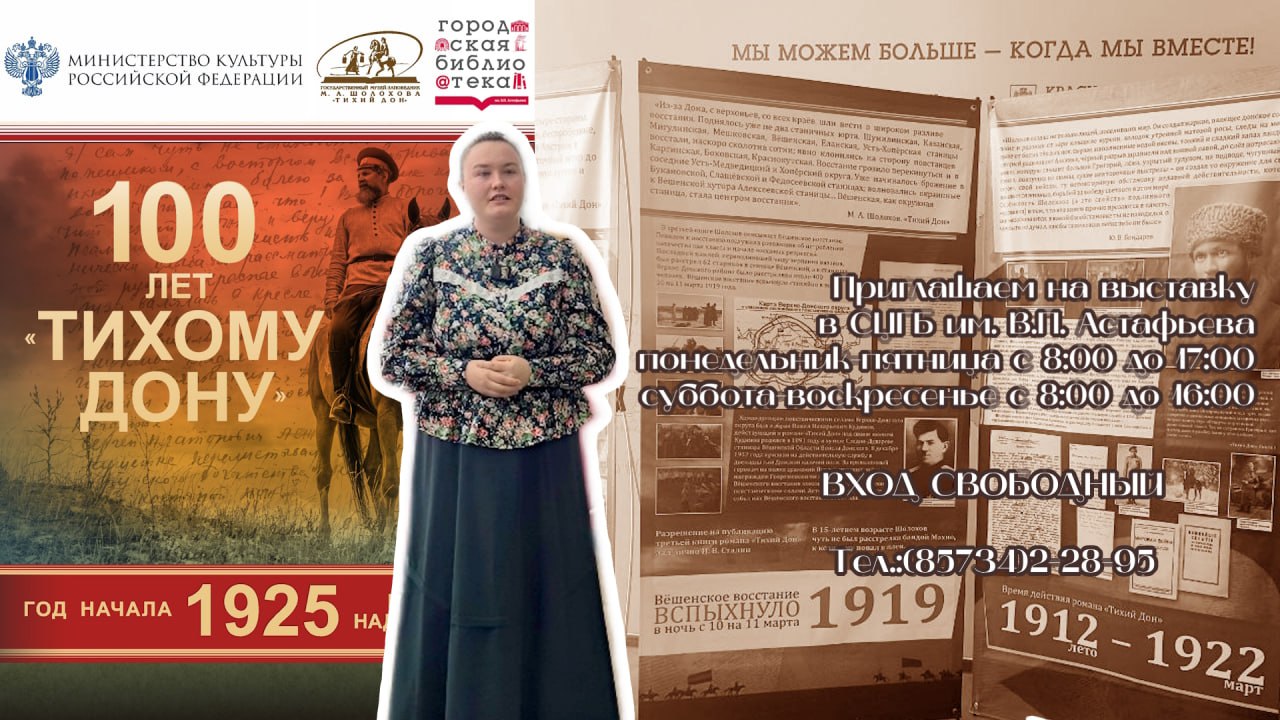 С 12 марта по 15 апреля в холле Свердловской центральной городской библиотеке имени В.П. Астафьева будет действовать уникальная выставка «Сто лет Тихому Дону», посвященная 100-летию с начала работы над романом-эпопеей М. А. Шолохова «Тихий Дон».
