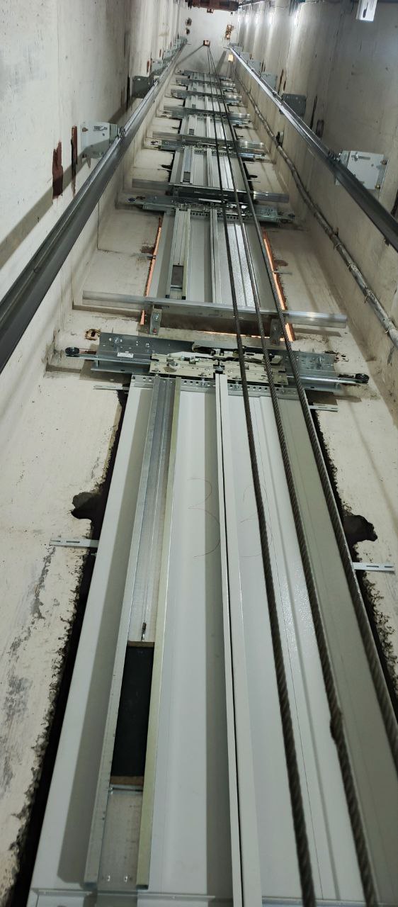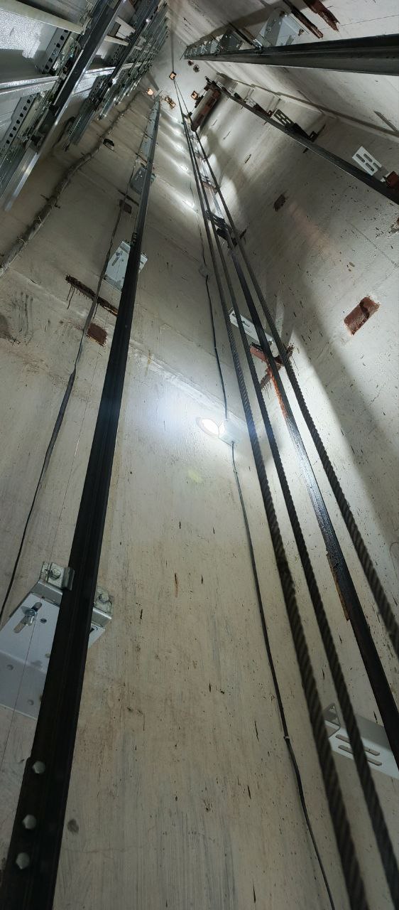 На данный момент работы ведутся на кв. 60 лет СССР, д. 40. Уже доставлены машинокомплекты для 5 подъездов, ведётся демонтаж устаревшего оборудования, установка станций, замена центральных направляющих и кронштейнов по шахте лифта.