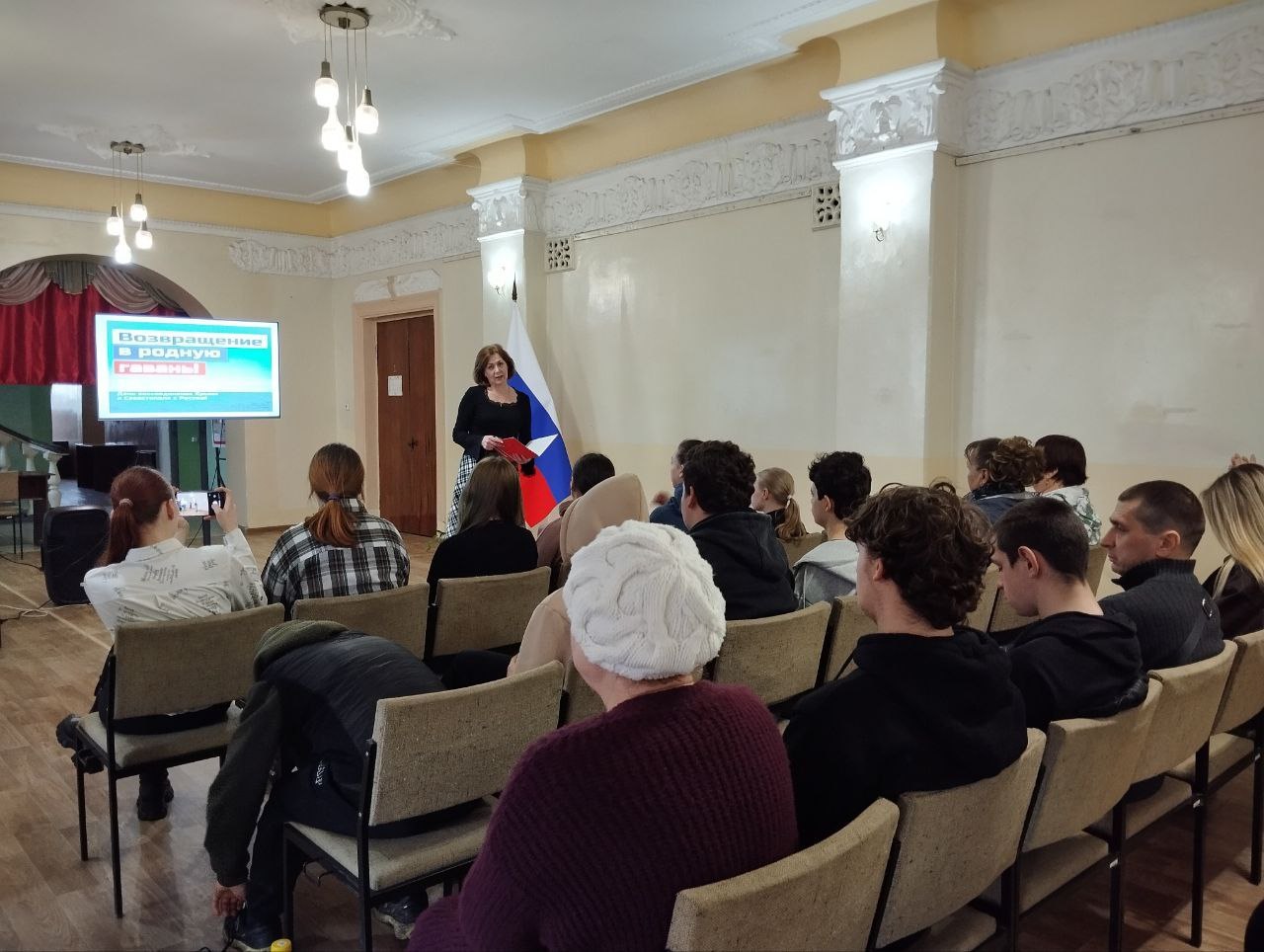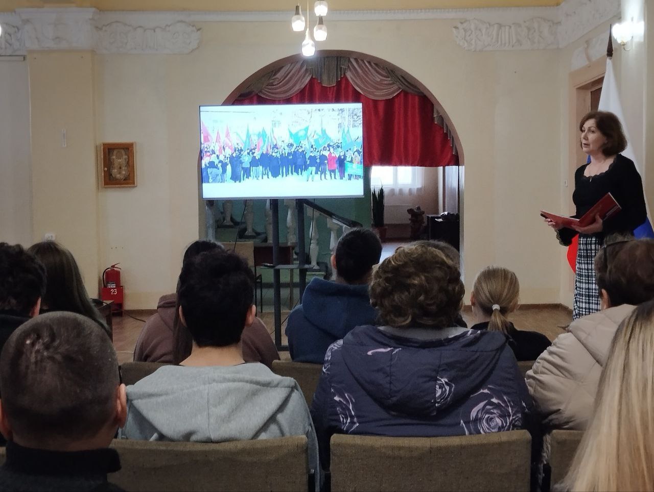 Студенты Кировского транспортного техникума стали участниками патриотического урока «Крымская весна», который прошел в городском Дворце культуры. Ребята узнали о том, как интегрировались Крым и Севастополь в правовое, экономическое и социально-культурное пространство России и какой социально-экономический подъем они пережили, как изменился облик региона за эти 12 лет.