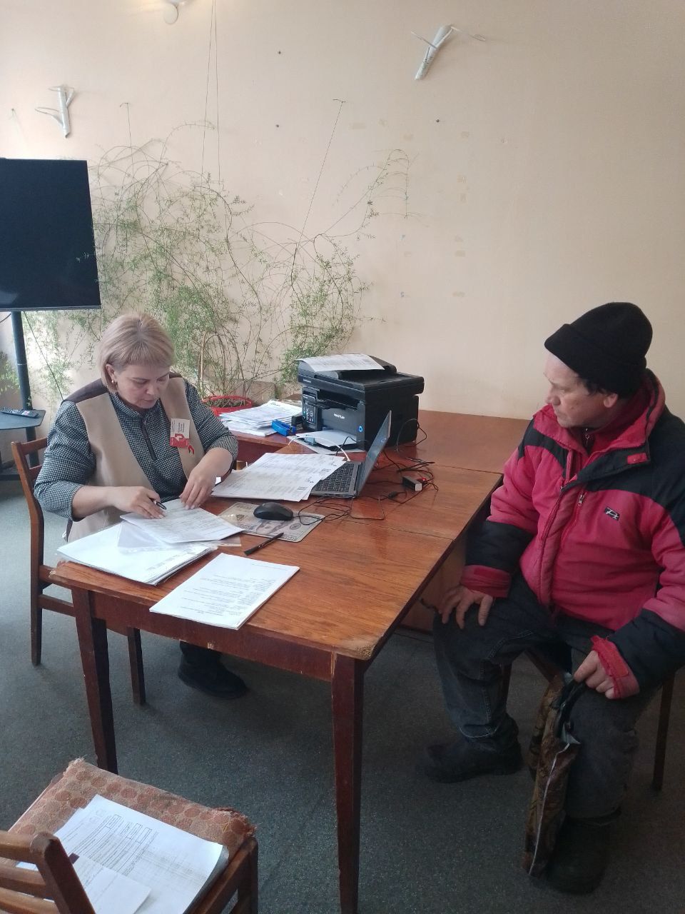 Сегодня 18.03.2026г на территории Великочерниговского отдела жизнеобеспечения в с.Червоный Жовтень был проведён выездной приём граждан специалистами ГБУ ЛНР "МФЦ "