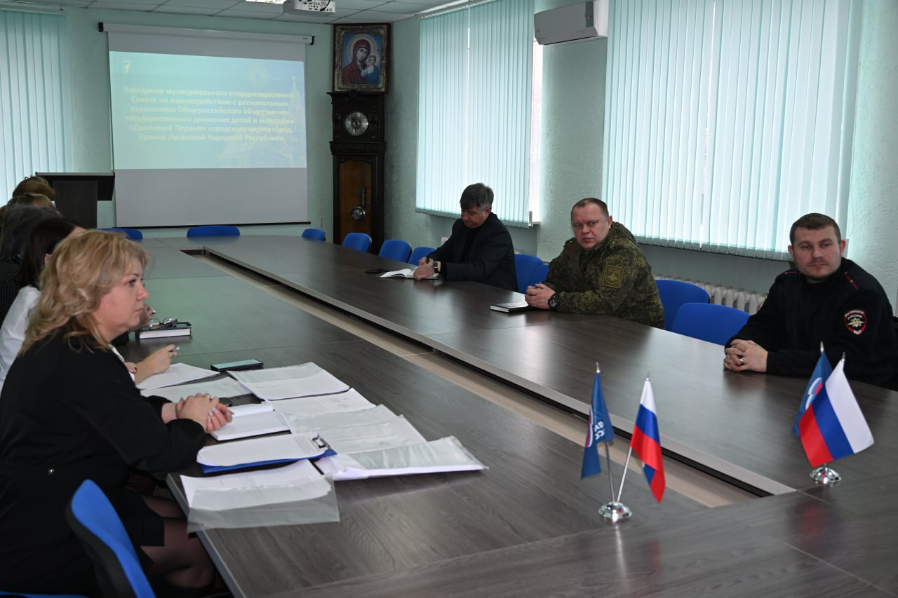В Администрации Брянки состоялось заседание Муниципального координационного совета по взаимодействию с региональным отделением Общероссийского общественно-государственного движения детей и молодежи «Движение Первых» Луганской Народной Республики. Главными темами стали итоги работы за 2025 год, перспективы расширения сети первичных отделений и подготовка к всероссийской военно-патриотической игре «Зарница 2.0».