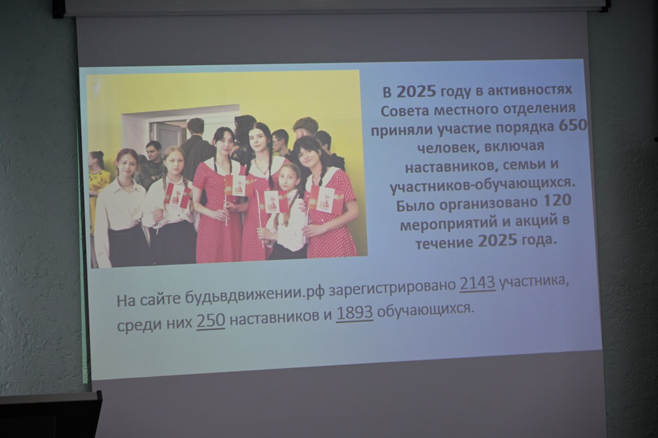 "Сегодня в городе действует 11 первичных отделений: 9 на базе общеобразовательных школ и 2 – на базе учреждений среднего профессионального образования. На официальном сайте будьвдвижении.рф от Брянки зарегистрировано 2143 участника, среди которых 250 наставников и 1893 обучающихся. В 2025 году в активностях совета местного отделения приняли участие порядка 650 человек – это не только школьники, но и их наставники, семьи активистов. За год было организовано около 120 мероприятий и акций.