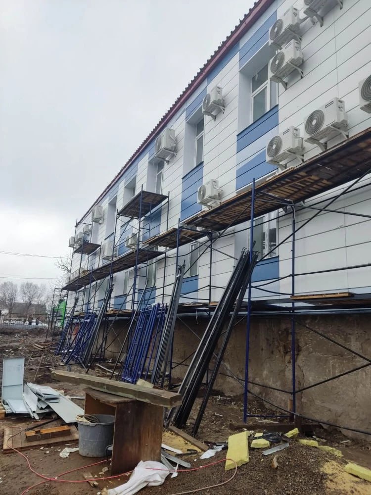В здании Администрации Беловодского МО при участии региона-шефа Новосибирской области производят облицовку фасада