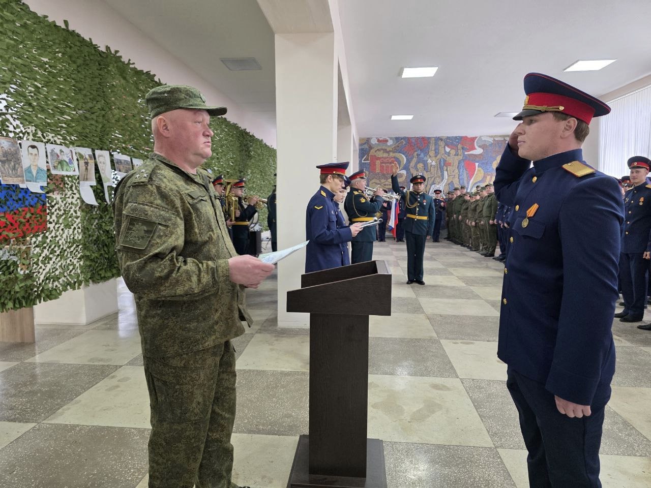 Завершилось мероприятие творческим подарком: для сотрудников, работников и курсантов выступили музыканты военного оркестра войсковой части 66102, коллектив которого награжден Почетной грамотой Председателя СК России.