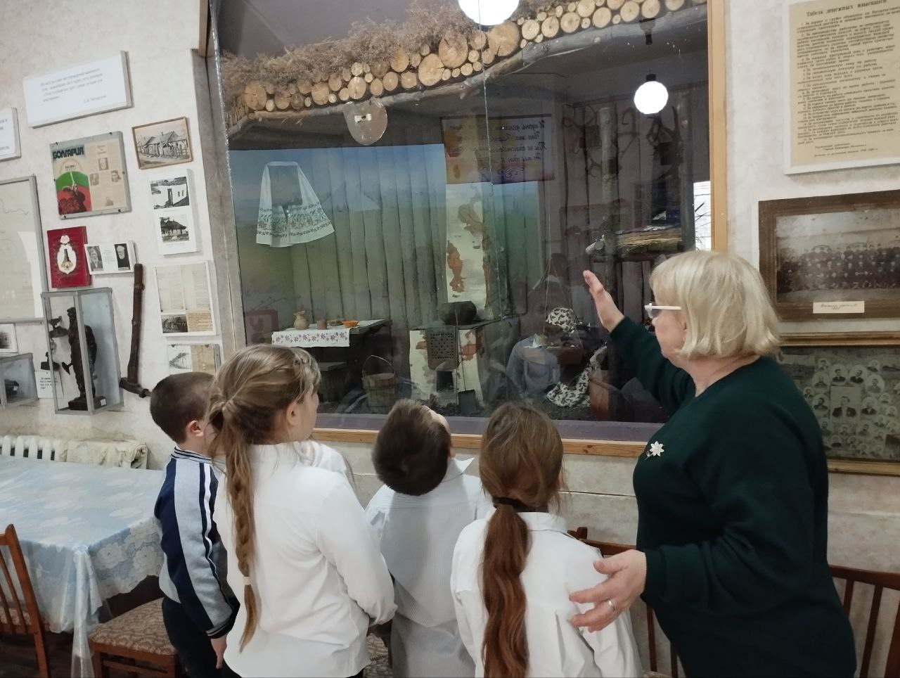В Кировском историко-художественном музее состоялась экскурсия по залам музея для учащихся 3, 4 классов Кировской СШ №3. Они имели возможность посмотреть экспонаты раздела «Довоенная Голубовка», «Родная природа». Посмотрели предметы домашнего обихода жителей Голубовского рудника в конце ХХ начале XXI века. Гости также ознакомились с содержанием экспозиций военного зала, «Русская изба», «Землянка» и т. д.