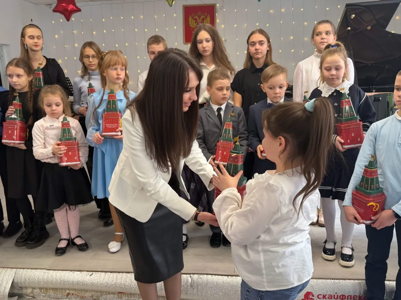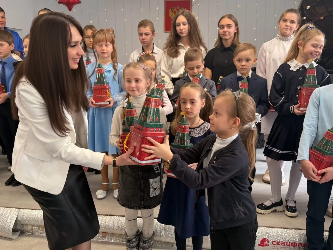 В знак признания их высоких творческих достижений Секретарь Северодонецкого местного отделения партии „ЕДИНАЯ РОССИЯ“, муниципальный координатор партийного проекта "Женское движение Единой России" Яна Сылкина вручила наборы сладостей ученикам музыкальной школы № 2 и детской художественной школы. Эти подарки стали наградой для победителей и лауреатов за их усердие и волю к победе. Дети же, в свою очередь, порадовали гостей своим талантом, показав ряд творческих номеров.