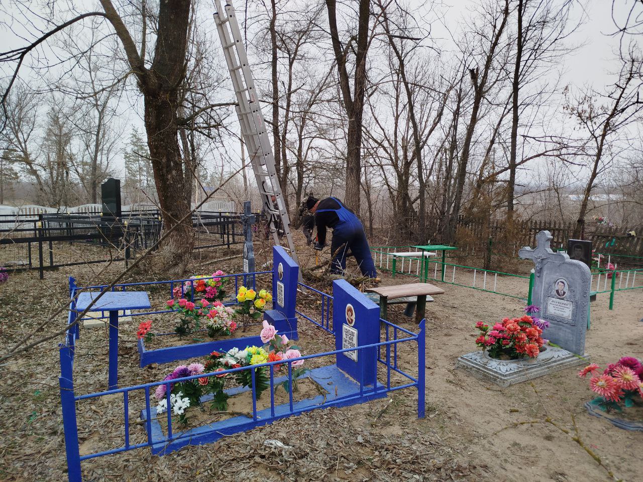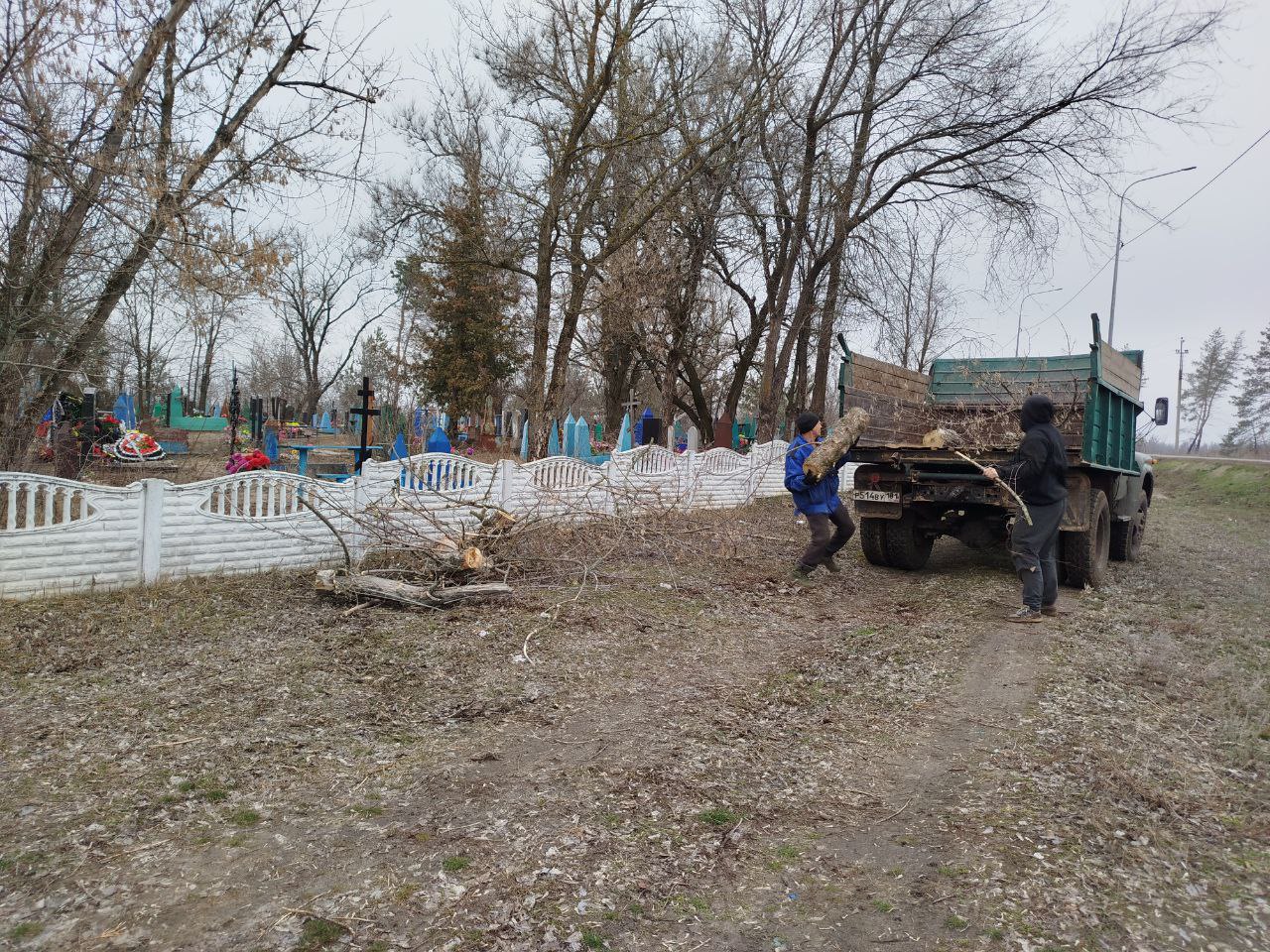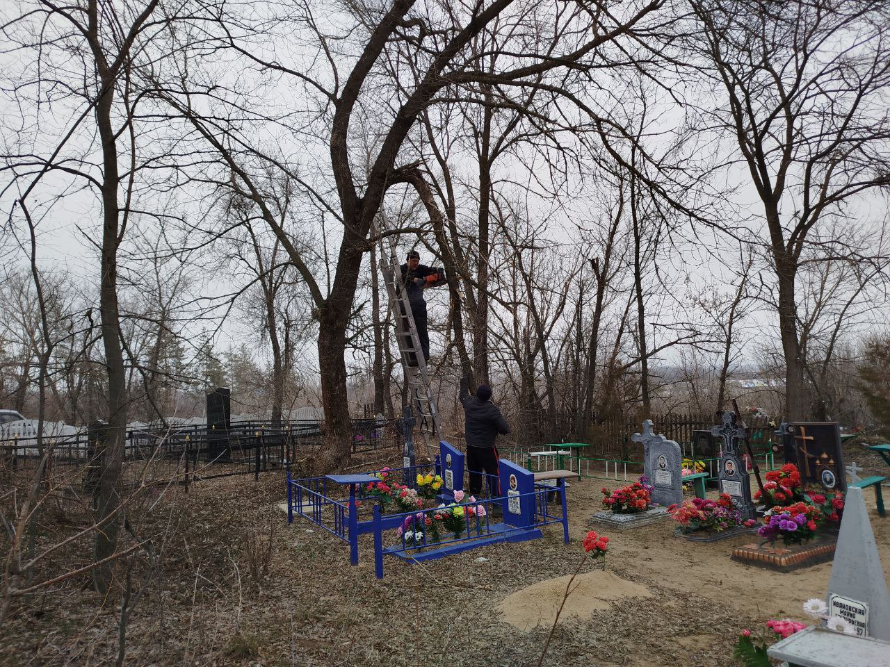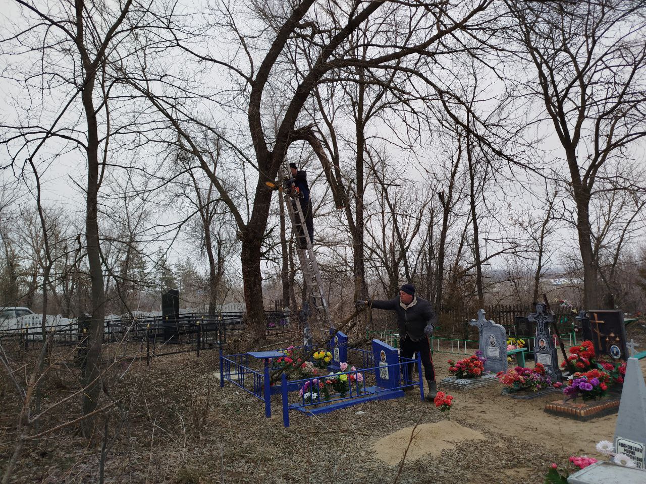 Сегодня в Нижнеольховском ОЖО местные жители провели обрезку сухих деревьев на кладбище села Нижняя Ольховая