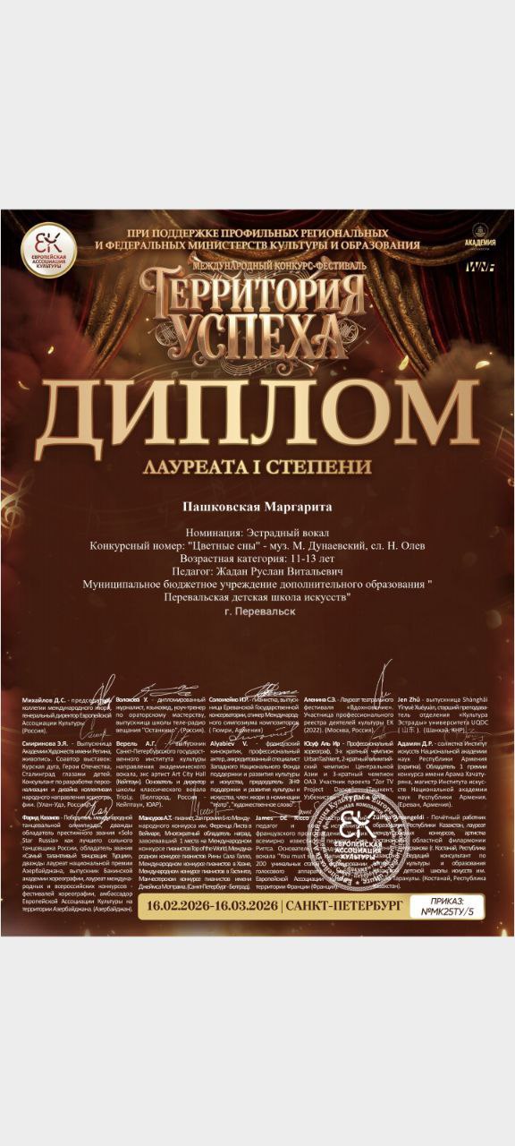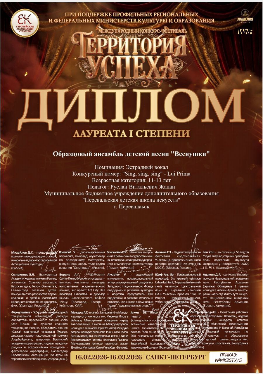 Воспитанники образцового ансамбля детской песни «Веснушки» (руководитель Руслан Жадан) достойно представили наш город на международном конкурсе-фестивале «Территория успеха».