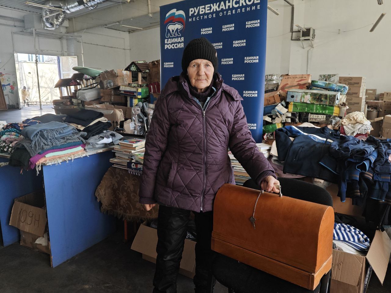 Волонтеры гуманитарного центра «Единая Россия» передали эвакуированным жителям городского ПВРа инвалидную коляску для нуждающейся пожилой женщины и швейную машинку, благодаря которой переселенцы уже начали обшиваться.