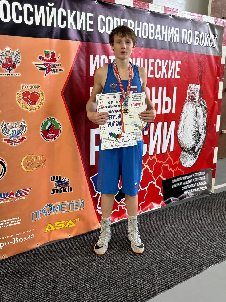 место - Осипов Богдан, он стал победителем в весовой категории до 70 кг среди юношей 13-14 лет и завоевал путевку на Первенство России среди юношей 13-14 лет.