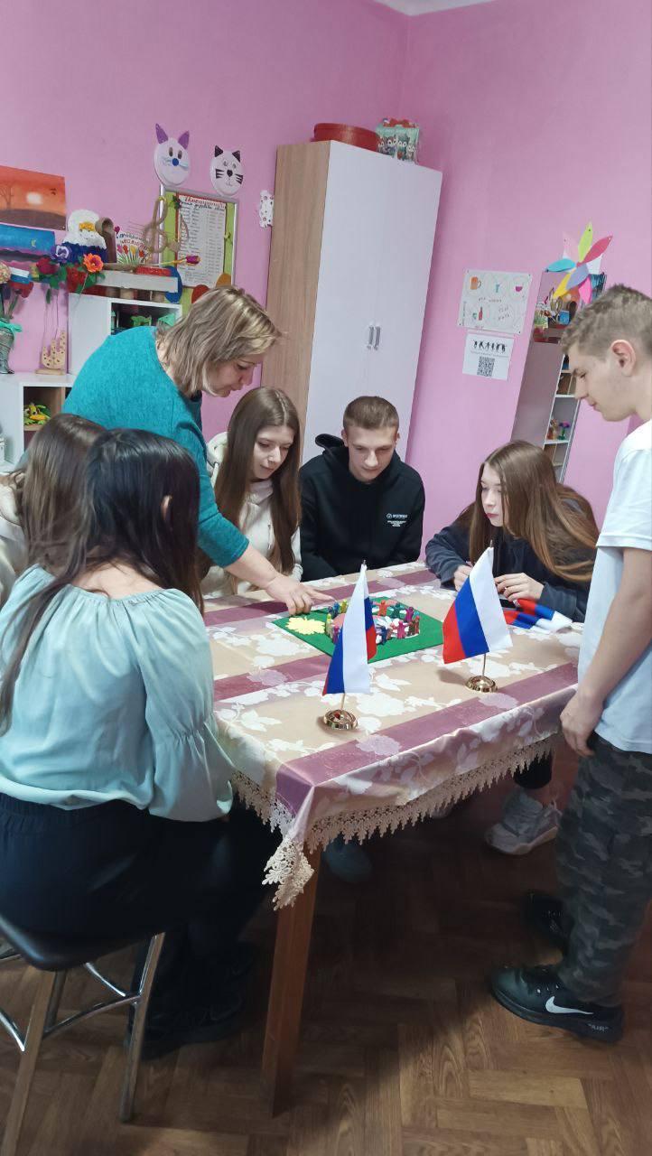 Участники беседы отправились в увлекательное путешествие по страницам прошлого, узнавая о ключевых моментах, сформировавших уникальный облик Крыма. Особое внимание было уделено событиям 2014 года, которые привели к долгожданному воссоединению с Россией. Чтобы помочь ребятам глубже прочувствовать значимость тех исторических дней, были продемонстрированы трогательные видеоролики "Добро пожаловать в Крым" и "Мы идём домой".
