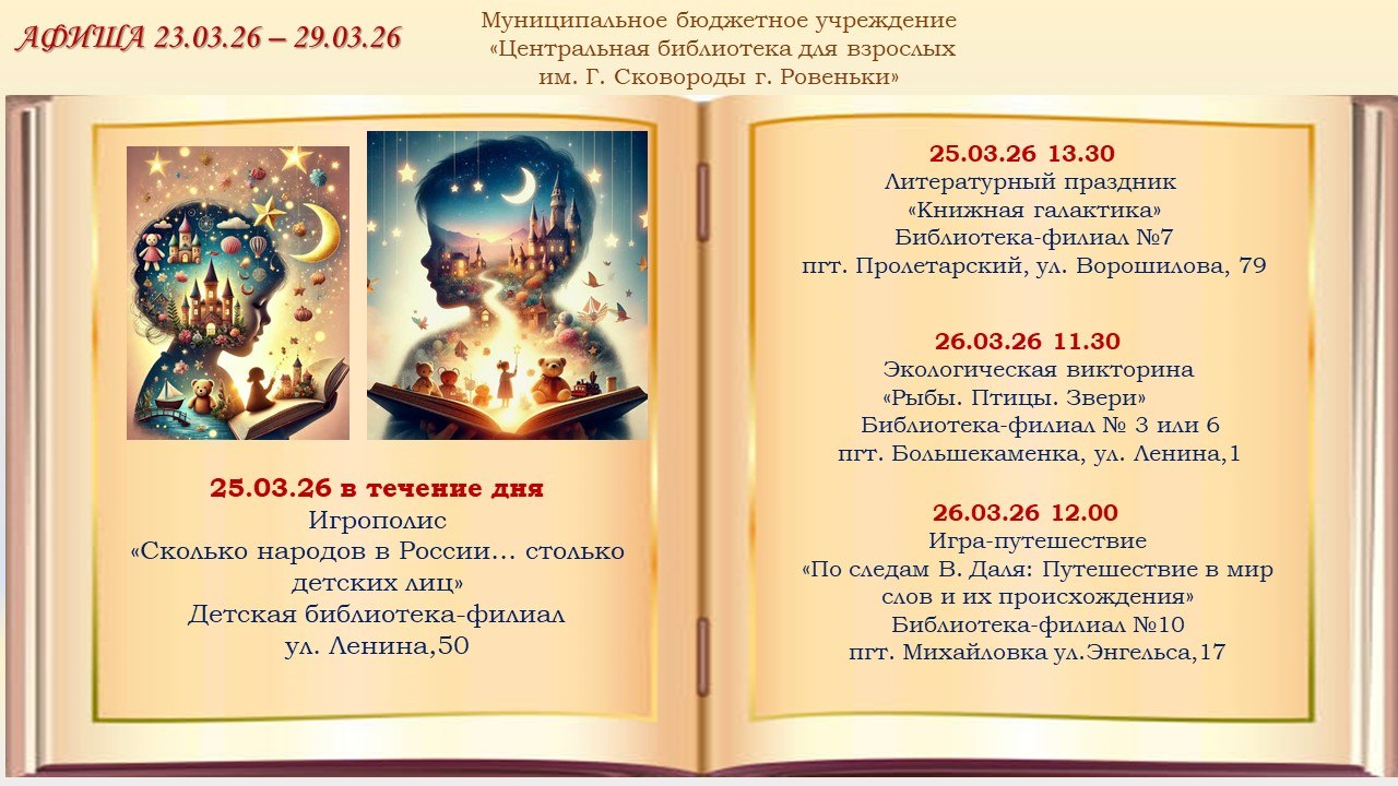 Сотрудники библиотек города и поселков с радостью приглашают вас на цикл увлекательных тематических мероприятий, которые подарят вам незабываемые впечатления и новые знания!