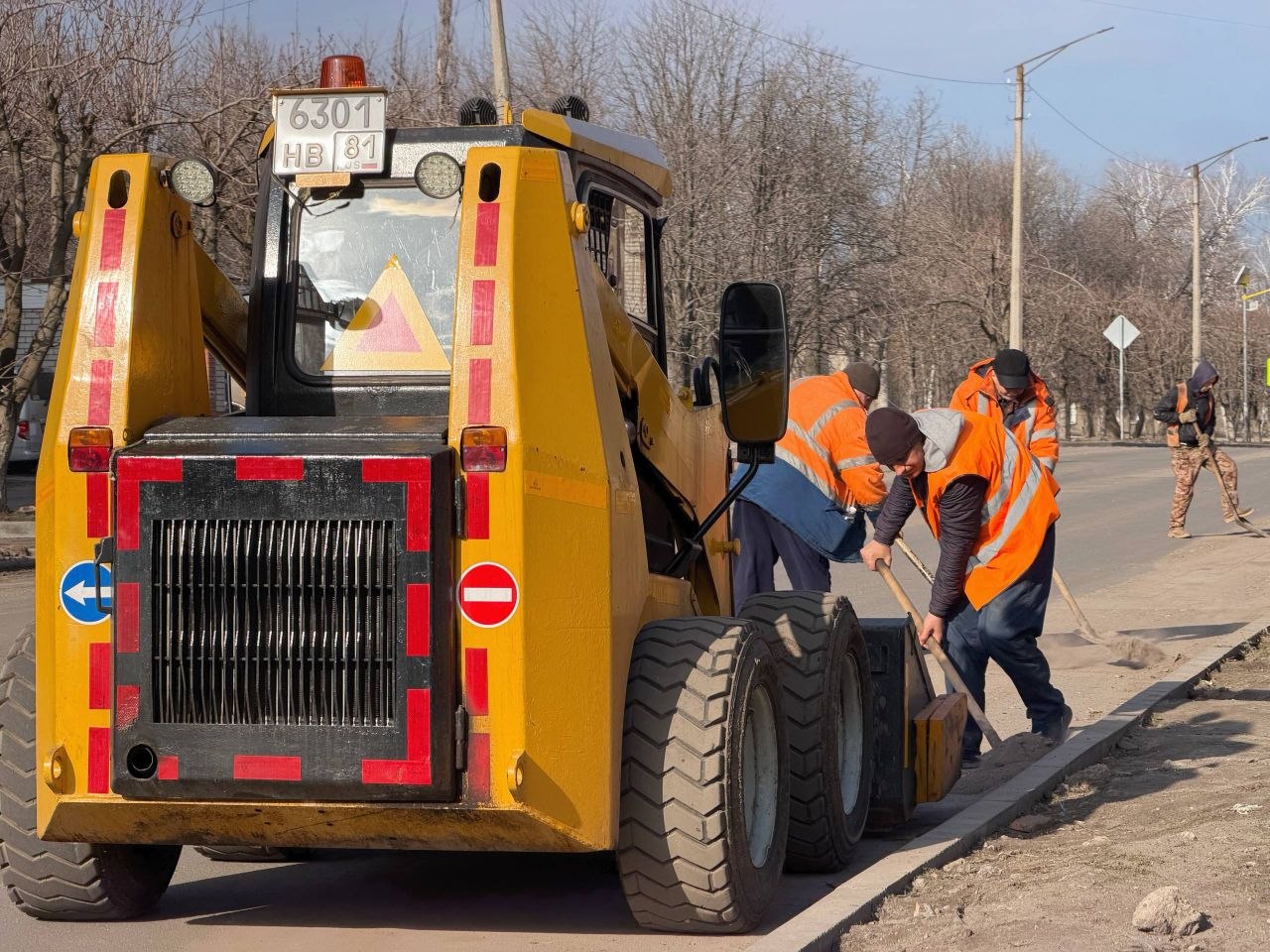 Специалисты Муниципального унитарного предприятия «Комбинат коммунальных услуг города Первомайска» продолжили уборку асфальта у бордюрного камня по улице Макаренко.