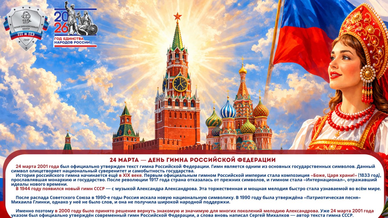 24 марта 2001 года был официально утвержден текст гимна Российской Федерации