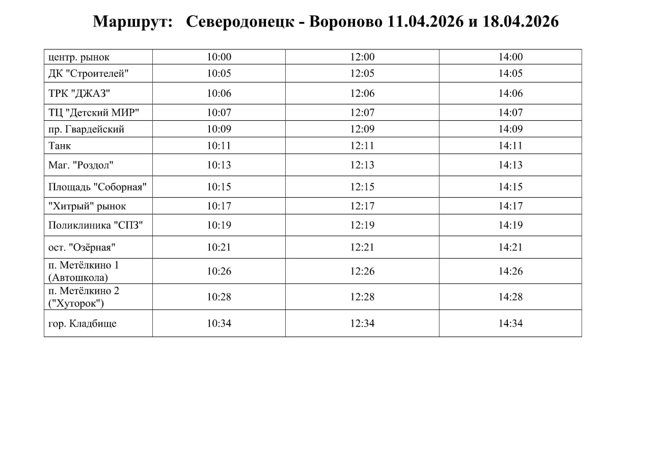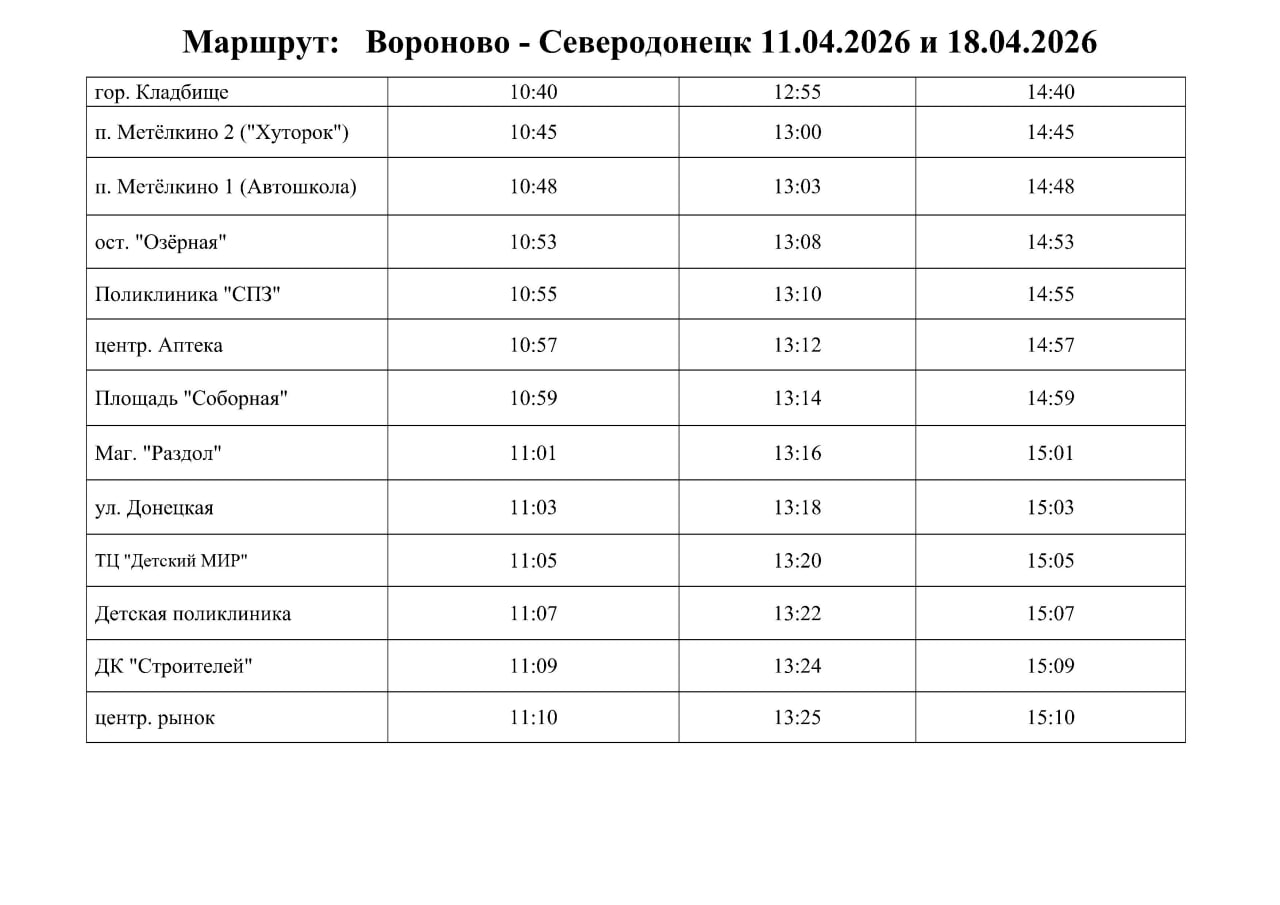 Обратный рейс "кладбище" (Вороново): 10:40; 12:55; 14:40;