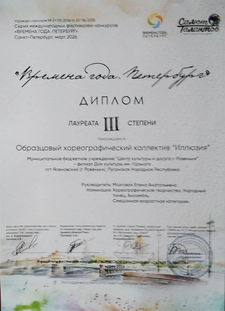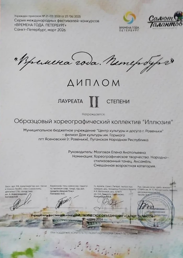 Хореографический коллектив "Иллюзия" из Ровенек стал призером в престижном Международном фестивале-конкурсе "Времена года - Петербург
