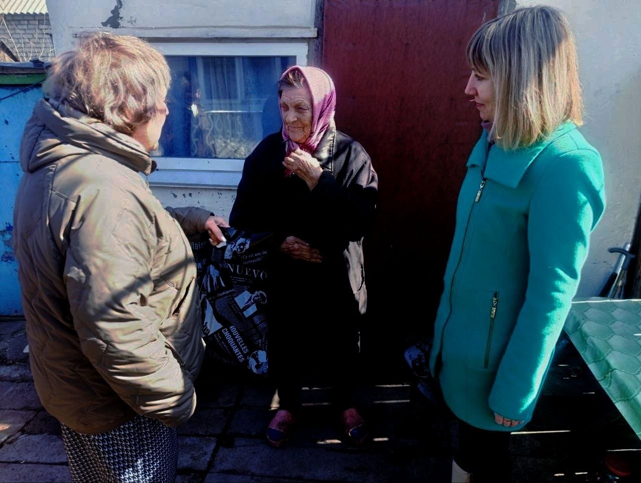 Сотрудники отдела жизнеобеспечения пгт Ясеновский, пгт Пролетарский Администрации городского округа город Ровеньки оказали помощь одинокой пожилой жительнице пгт Пролетарский, Мирошниковой Екатерине Григорьевне, 1945 г.р. в виде продовольственного набора.