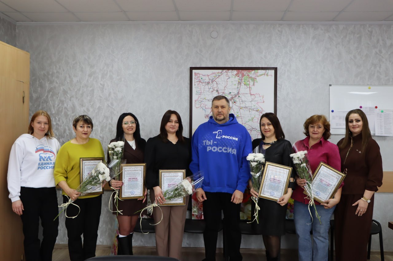 Мероприятие прошло в тёплой и душевной атмосфере. Партийный секретарь вручил благодарности, цветы и памятные подарки сотрудникам районных учреждений — Дома культуры имени Т.Г. Шевченко, детской музыкальной школы имени А.П. Тертычного и Центральной районной библиотеки.