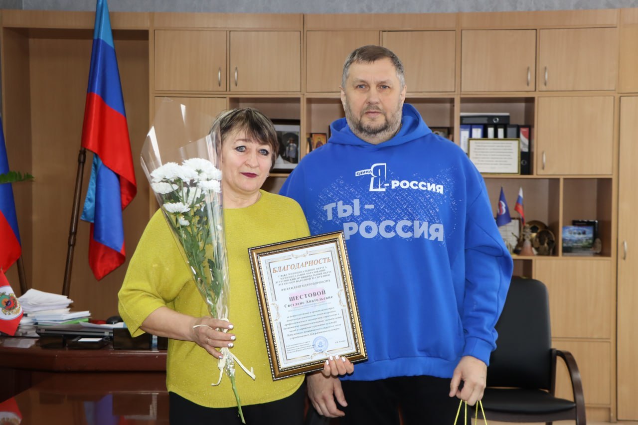 В преддверии Дня работника культуры секретарь Лутугинского местного отделения партии «Единая Россия» Евгений Бондарь поздравил представителей культурной сферы округа с профессиональным праздником. Он поблагодарил работников культуры за преданность профессии, большой вклад в сохранение духовного наследия, воспитание подрастающего поколения и развитие творческой жизни Лутугинского муниципального округа.