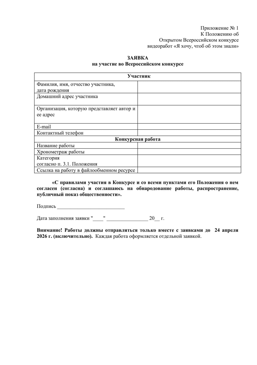 Прием заявок и конкурсных работ осуществляется с 23 марта по 24 апреля 2026 года